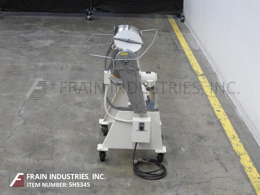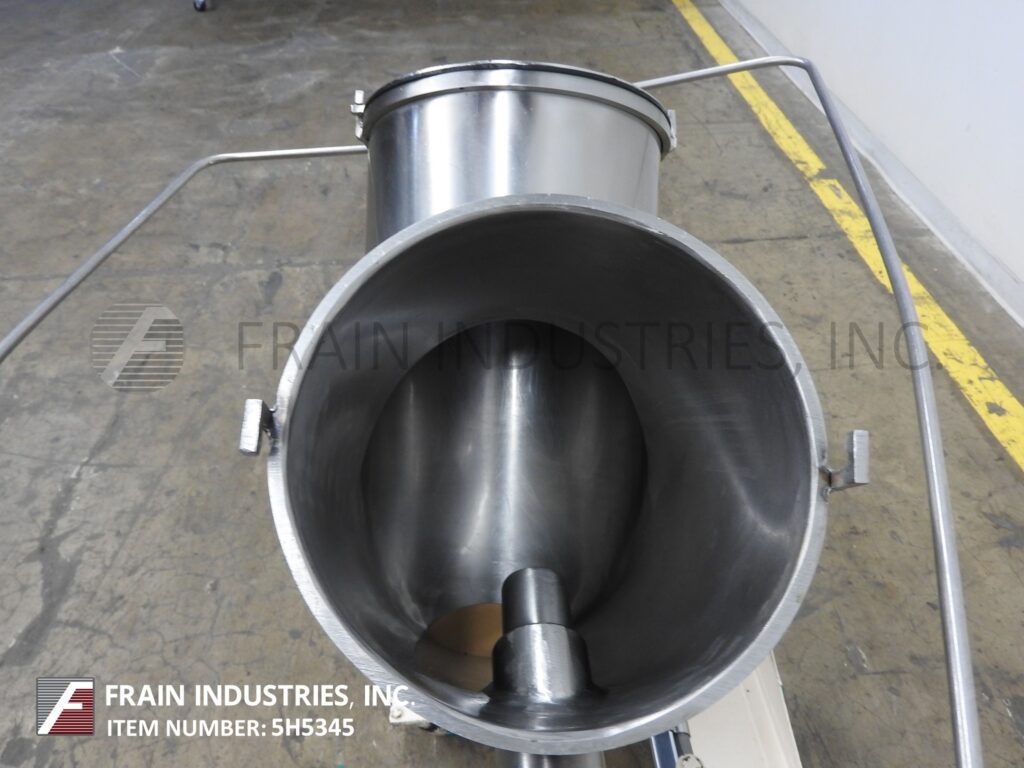 1 cu ft working capacity, rated for a bulk density on average of 65 lbs working capacity per cu ft. 316 S/S double cone tumble mixer, has a liquid solids bar, 11 1/2" hinged cover charge port with a 4"diameter butterfly valve discharge. Nema-7 control panel including motor starter, start/stop push buttons, fuse block. Swing diameter of 65 1/2".