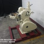Klockner Hansella, Model 85A, high speed, rotary, seamless, hard candy die forming machine. Rated from 123 to 231 feet of sugar rope per minute with sizes and shapes – depending materials, application, die size and die arrangement. Equipped with 7" OD outer and 5¾" OD inner product rope feed rings driven and synchronised by the rotary die head into the die area to plunger forming the product. Operation: continuous production of seamless sweets, or tablets with or without center filling and can be used as part of a complete production line or integrated into an existing line.