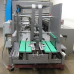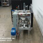 Pearson, Model CE35G, Automatic, case erector and hot melt glue bottom sealer. Rated from 10 to 35 cases per minute – depending on materials, application and machine configuration. Case size range: 8.75" to 23½" in Length; 5" to 16" in Width, 3½" to 18½" in Depth. Equipped with 52" long (4) chain automatic blank case magazine, suction cup pic n place and case erecting squaring system with top hold down, hand crank height and width adjustable case feed section, top flap lifters and rear flap closers and plow and Nordson hot melt glue system. Control panel has A/B controller with A/B PanelView touch screen HMI and statis light bar. Mounted on heavy duty frame with interlock safety guarding.