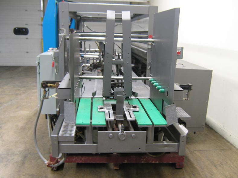Glue case erectors are designed to erect cases from pre-scored folded-flat blank corrugate and to close and seal the bottom of the case with glue. The glue case erectors form the case, fold the bottom minor flaps, apply the glue to either the folded minor flaps or the unfolded major flaps, and close the major flaps. The glue sealed major flaps are often compressed for a short period of time to allow the glue to set up resulting in a stronger seal.