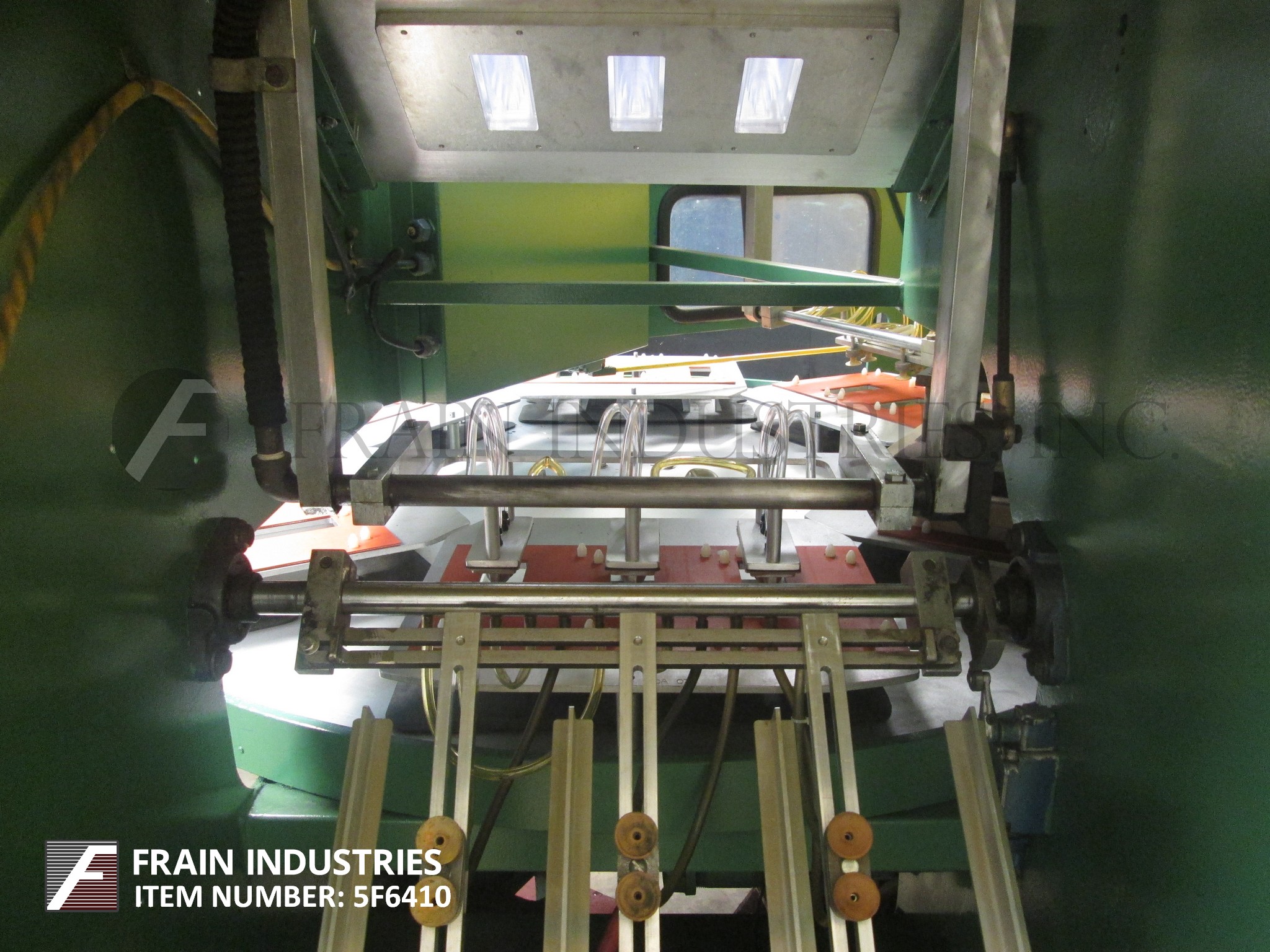 Pearson, Model CE35G, automatic, case erector and hot melt glue bottom sealer. Rated from 12 to 35 cases per minute – depending on materials, application and machine configuration. Case size range: 8.75" to 23½" in Length; 5" to 16" in Width, 3½" to 18½" in Depth. Equipped with 77" long (4) chain automatic blank case magazine, suction cup pic n place and case erecting squaring system with top hold down, hand crank height and width adjustable case feed section, top flap lifters and rear flap closers and plow and Nordson hot melt glue system. Control panel has AB controller with AB PanelView touch screen HMI and statis light bar. Mounted on heavy duty base frame with interlock safety guarding.