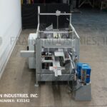 Pearson, Model CE35G, Automatic, case erector and hot melt glue bottom sealer. Rated from 12 to 35 cases per minute – depending on materials, application and machine configuration. Case size range: 8.75" to 23½" in Length; 5" to 16" in Width, 3½" to 18½" in Depth. Equipped with 77" long (4) chain automatic blank case magazine, suction cup pic n place and case erecting squaring system with top hold down, hand crank height and width adjustable case feed section, top flap lifters and rear flap closers and plow and Nordson hot melt glue system. Control panel has AB controller with AB PanelView touch screen HMI and statis light bar. Mounted on heavy duty frame with interlock safety guarding.