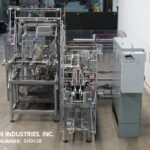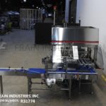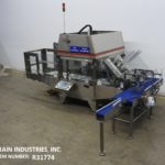 Thiele, Model ZB20A, Automatic, case and tray erector packer, hot melt glue sealer. Rated from 5 to 10 cases per minute – depending on materials and application. Case size range: 6" to 12" long x 10¾" to 19¾" wide x 2" to 6" deep. Equipped with (4) chains adjustable set on 33¾" centers with 5" high lugs, 36" long blank case magazine with (6) suction cup reciprocating vacuum pic n place, single push arm product loader, mechanical flap closers, Nordson hot melt glue system, case compression section Control panel has A/B PLC with A/B touch screen HMI. Mounted on heavy duty frame with interlocking plexy glass safety guarding and statis lights.