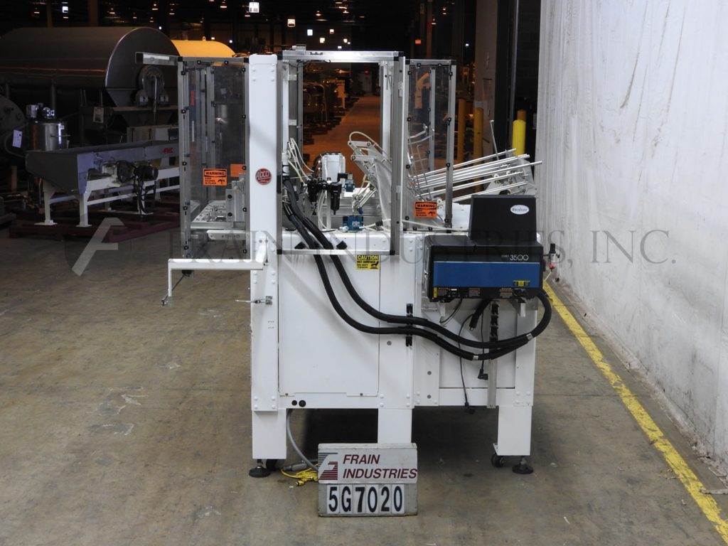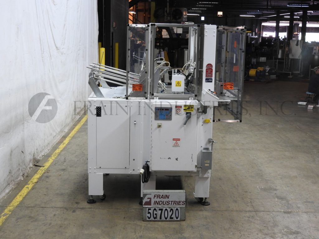 Adco, Model AFCX-30-7-EC, automatic, dual head top load tray former with hot melt glue sealer, rated from 5 to 30 cycles per minute each head – depending on materials and application. Tray size range: 3" to 17" in Length; 3" to 16" in Width: ¾" to 4½" in Height – depending on blank format. Capable of handling flat blank sizes up to 20" in Length and 18" in Width. Equipped with dual 23" long blank tray magazine, dual vacuum suction cup recipicating pick-in-place’s, dual mechanical tray forming heads, no tray / no form photo eyes and Nordson hot melt glue system with interlock safety guarding. Control panel switch controls for carton pick, glue guns, jog / run and speed. Push button start, stop and e-stop. Mounted on heavy duty base frame with leveling legs.