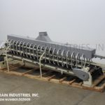 Stainless steel, cooling trough with number of product per hour – depending on materials and application. Tunnel has 29" wide x 7" high aperature x 187" long chamber with 264" long x 30" wide blue flex link product belt conveyor and (6) 48" long x 29" wide top flip up covers, temperatures probles and has product discharge chute to 148" long x 24" wide x 31" high end COP style cooling trough with circulation pump and 1) 10 ton chillers. Control panel has touch pad controller with start / e-stop controls. Both mounted on stainless steel base frames.