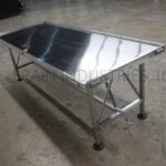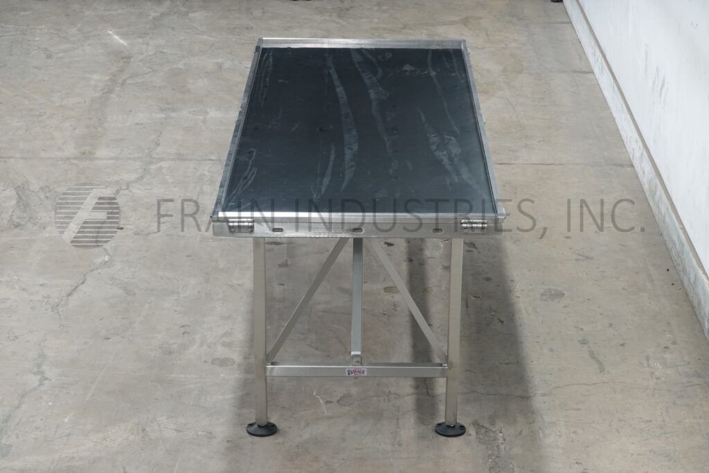 Savage, 36" x 96L stainless steel frame jacketed table top designed to withstand 100 PSI. Ribbed table top to prevent twisting or deflection during alternate cooling/heating cycles from steam or water source. Equipped with a 34½" wide x 94½" long working space, hinged perimeter of table and 32" loading height.