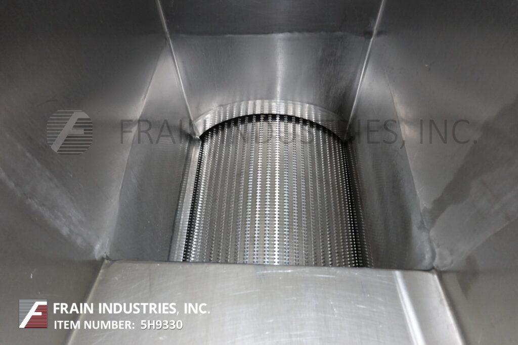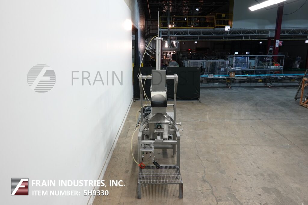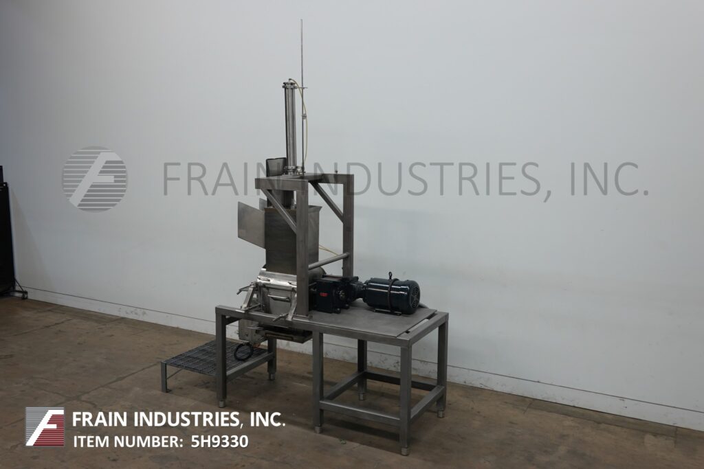 Stainless steel cheese shredder / pre breaker. Equipped with a 14" x 16" feed throat, pneumatic product pusher, shredding drum powered by a 20 hp drive and 15" x 14" discharge with 28" ground clearance.