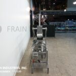 Urschel Model M6, stainless steel, belt fed, dicer, shredder and strip cutter designed for meat products and is capable of production rates from 500 to 4,500 lbs. per hour – depending on materials, application and machine configuration. Capable of strip cuts from 3/16" to 3" and cross cuts from 1/8" to 4". Equipped with 32" x 9" load area on feed belt and adjustable feed roll allowing for positive product feed at all thicknesses from 3/8" to 1", infeed height of 35", 16" long x 13" wide discharge chute with 14½" ground clearance. Mounted on stainless steel frame with castors. Change parts required to accommodate size range.