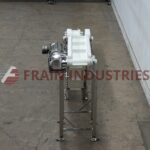 GWI, stainless steel, incline cleated belt feeder with number of product per hour – depending on materials, application and machine configuration. Equipped with 19" wide x 22½" long x 17" deep (1.5 ft³) stainless steel hopper with 54" infeed height, 18½" wide x 130 long food grade conveyor belt with 3" high cleats set on 5¾" centers with a 131" discharge height powered by a top mounted 1 hp drive. Mounted on steel frame with castors.