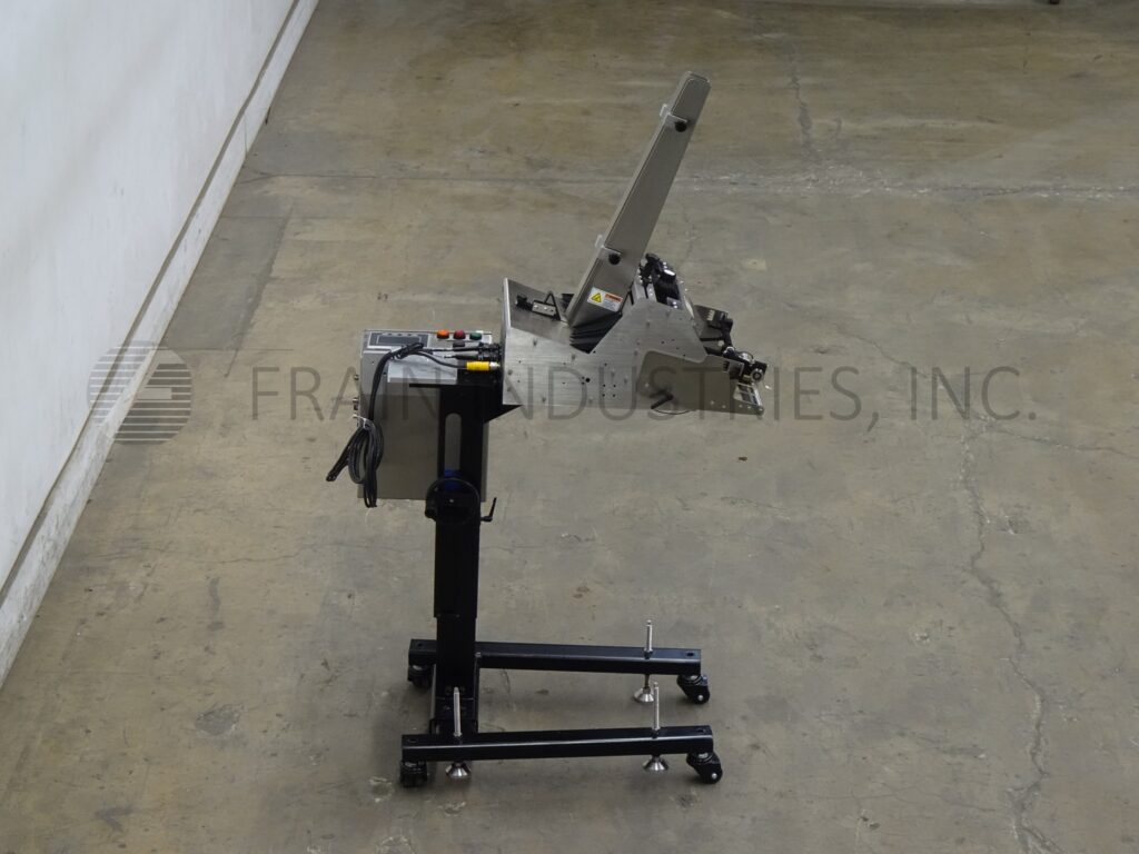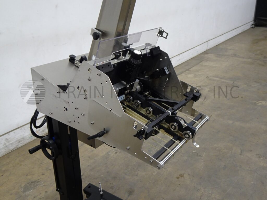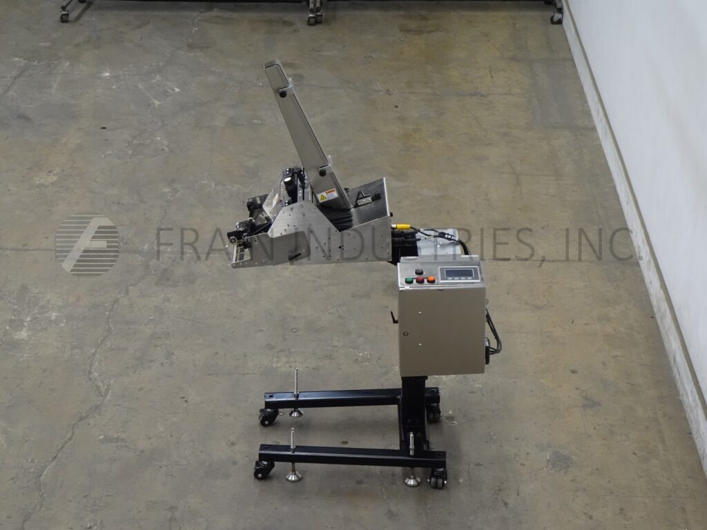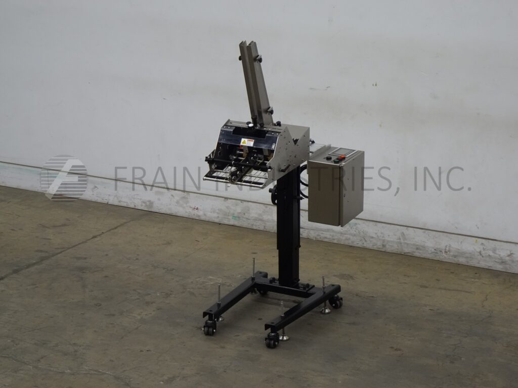 Streamfeeder, Model P-1250, Automatic, card and coupon feeder, with product speed up to 14,000 per hour based on CR-80 at + / – .125" tolerance – depending materials, application and machine configuration. Product size range: 2½" to 14" in Length; 2" to 10½" in Width; 0.003" to 1" Thick. Equipped with 24" high coupon magazine, feed transport belts and trigger sensor eye. Control panel has touch pad controls with readout and start, stop push buttons. Mounted on base stand with casters and leveling legs.