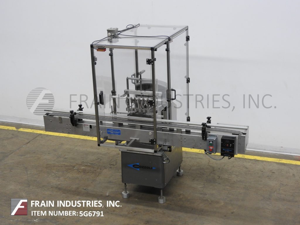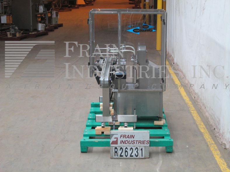 Cozzoli / MRM, ILF, (8) head, inline, intermittent motion stainless steel, piston filler with number of containers per minute – depending on materials, application and machine configuration. Equipped with 150" long x 3-1/4′ wide delron conveyor, (8) filling heads with 5/8" OD nozzles mounted on a 24" long slide bar with drip pan. Control panel has CPU controller with start, stop, machine and conveyor controls with e-stop, readout and safety guarding. Mounted on stainless steel base frame.