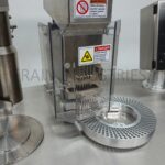 Capsugel, Model Ultra III, Semi automatic, stainless steel, powder or pellet capsule filler. Rated from 4,500 to 33,000 capsules per hour – depending on materials, application and operator dexterity. Equipped with capsul ring holder, capsule hopper, slide gate magazine, vacuum rectifier head, clockwise rotation indexing ring, index brake, agitated product hopper, pneumatic closing system and vacuum pump. Control panel has touch pad controller with panelview and start, e-stop push buttons. Mounted on stainless base frame with casters.