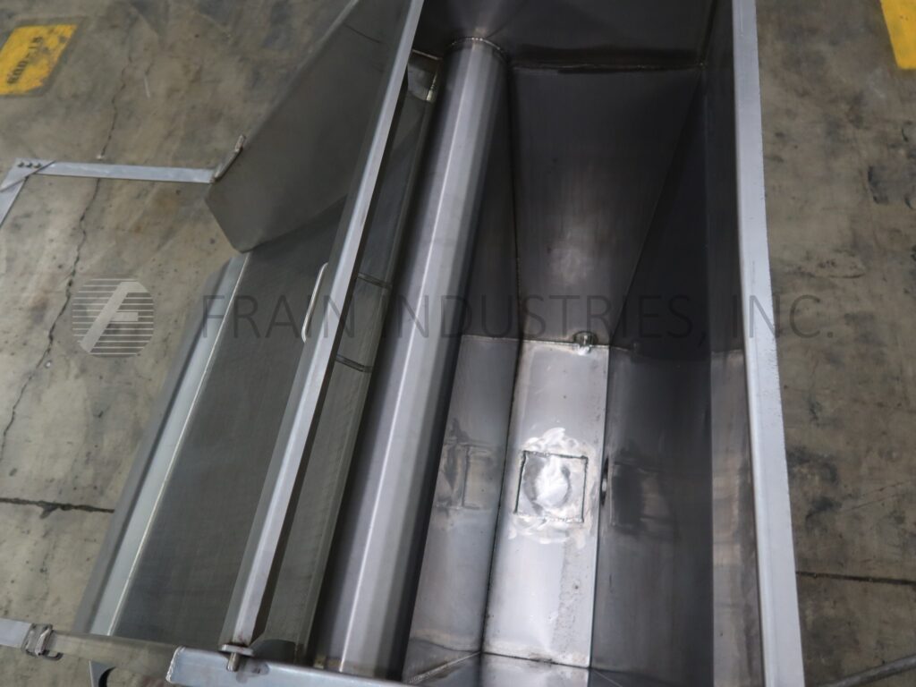 Andritz, 17" wide stationary-screen dewatering separator. Unit rated up to 100 GPM depending on materials, application, environment and machine configuration. Equipped with a 4¾"OD/4"ID Tri-Clamp style product with water charge into top trough with 2½"OD / 2" ID Tri-clamp bottom fitting, 24" wide x 48" long x 15" deep resivoir with 2½"OD / 2"ID Tri-clamp discharge with 4" ground clearance and 17" wide x 14" long screen with (1/32)" gaps and 22" ground clearance.