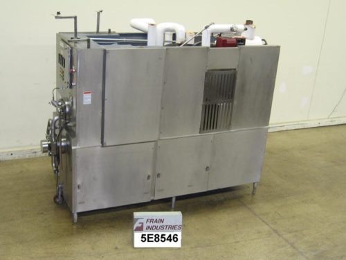 WCB / Anderson, Continuous, ammonia cooled, (3) tube nickel chrome plated freezing tubes rated from 20 to 75 gallons of mix per hour and 40 to 150 gallons of ice cream at 100% overrun per tube. Equipped with independent operation of tubes, (3) motor load gauges to determine product stiffness and stainless steel dashers with scraper blades. (3)10 Hp dasher motors, (3) 3 Hp mix pump motors, 1" Quick Clamp sanitary in feed and 1-3/8" out feed connections, three ammonia flow control dials with ammonia pressure gauges, and a clean-in-place switch selection. Requires 6-1/2 tons of refrigeration (19.5 for all three tubes) at 2 pound back pressure. Mounted on stainless steel frame.