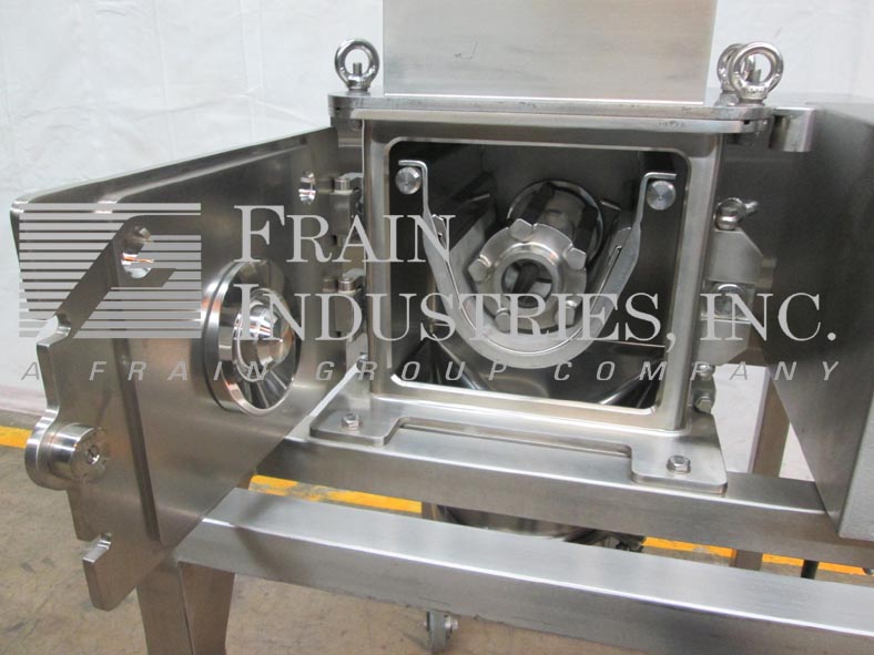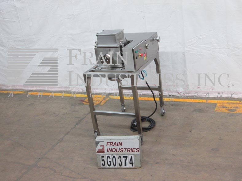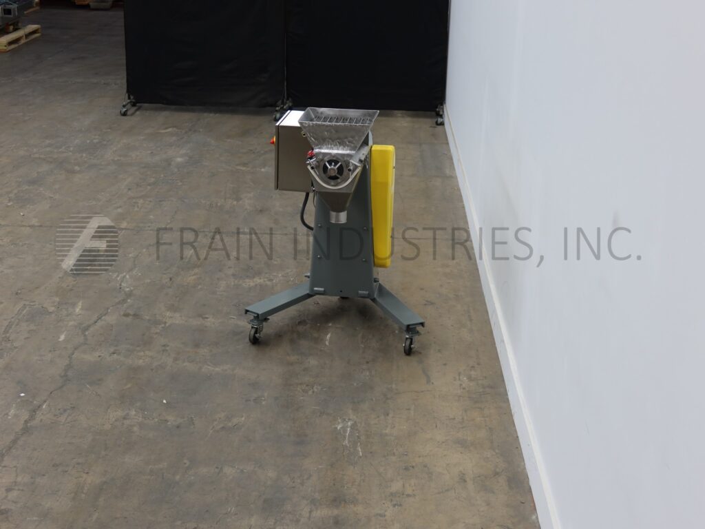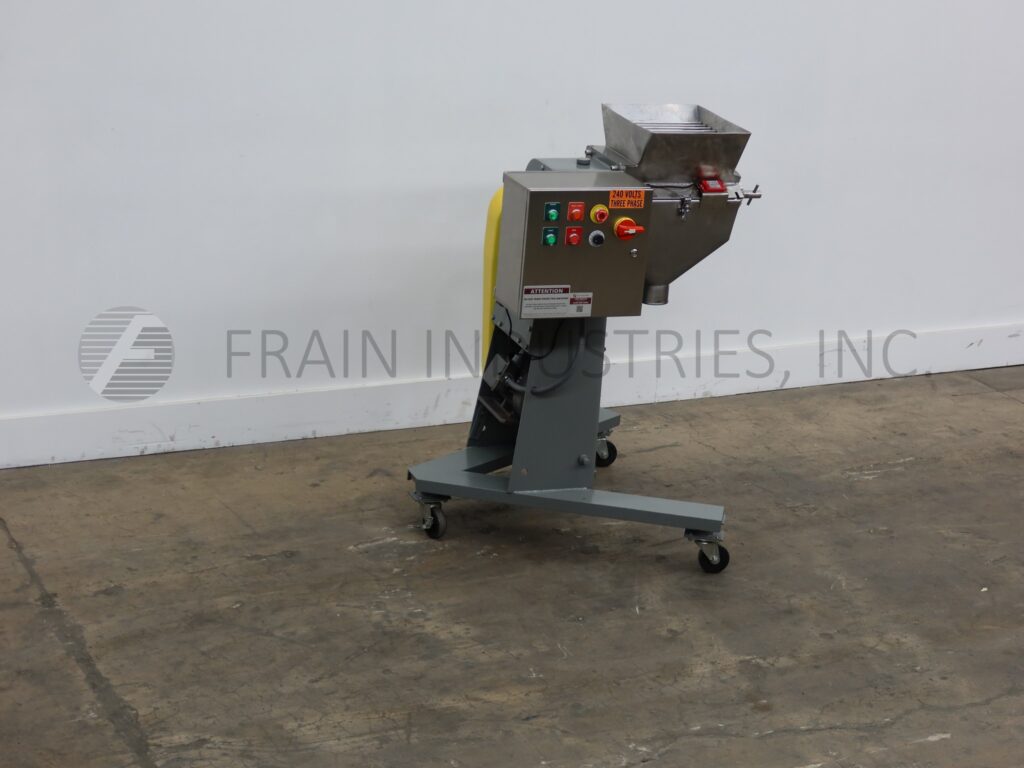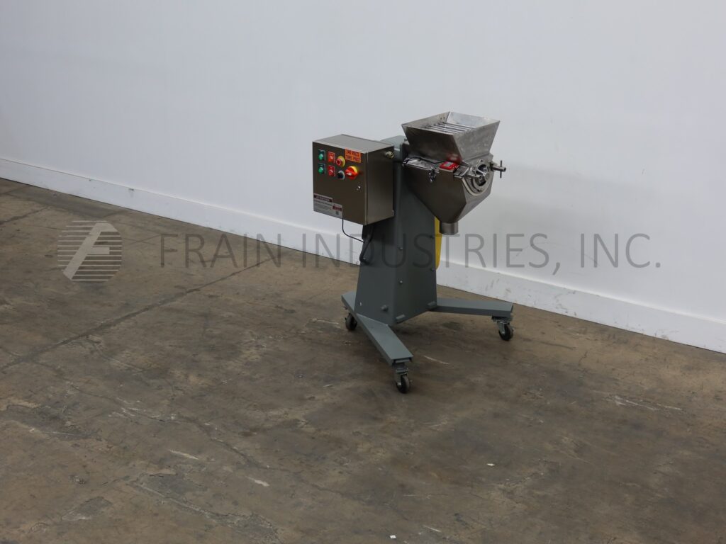 Oscillating granulator. Equipped with a 1 ft³ stainless steel product hopper measuring 16-1/2" in Length x 14" in Width x 8" in Height, six stainless steel hexagonal shaped breaker bars measuring 13" long x 1" diameter, a removable, stainless steel, 12" long x 16" wide bottom discharge chute with a 4" Diameter discharge and a 29-1/2" floor clearance, and push button controls. Mounted on casters. Screens required per application. Rates dependant on materials, application and machine configuration.