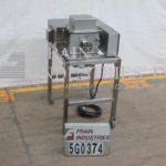 Frewitt Model MGI-628, stainless steel, oscillating granulator. Rated from 100 to 1500 lbs per hour – depending on materials, application and machine configuration. Equipped with 19" long x 11" wide x 6" deep top feed stainless steel product hopper with safety grid, (5) stainless steel breaker bars measuring 17" in Length x ¾" thick center bottom discharge and has 11" diameter discharge chute with 35" floor clearance. Control panel has push button controls start / stop / reset. Mounted on stainless steel (4) leg base frame with casters. Change parts: Removable screens are required per application for different size particle reduction.
