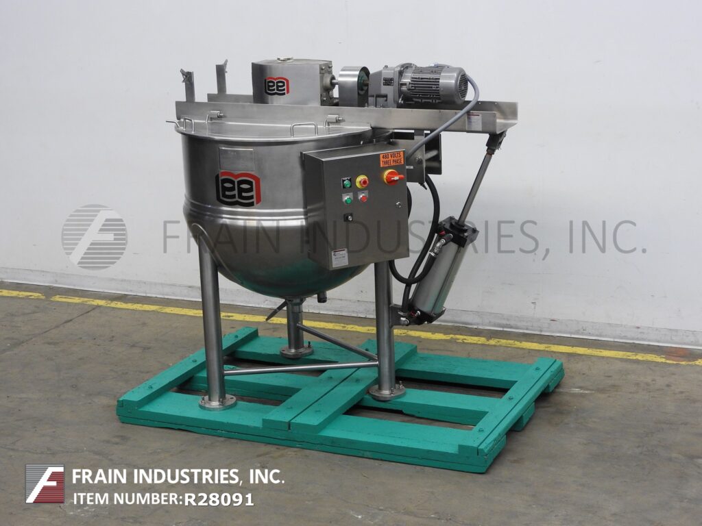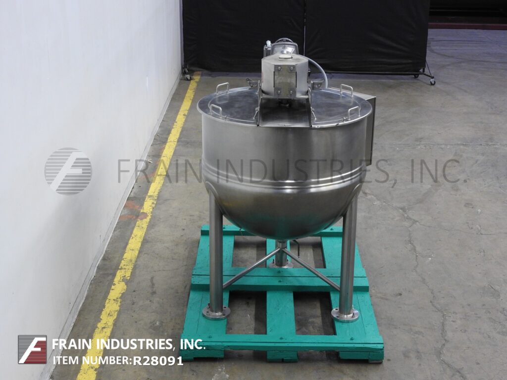 Frain Industries carries hundreds of used hemispherical bottom kettles in many different sizes depending on your application. Frain stocks kettles ranging from 2.5 gallons to 2000 gallons in many different configurations including: agitator, steam kettles or water jacket, scrape surface, tilt discharge, and many others. Additionally kettles can be made of multiple grades of stainless steel (typically 304 or 316/316L) with different levels of corrosion resistance.