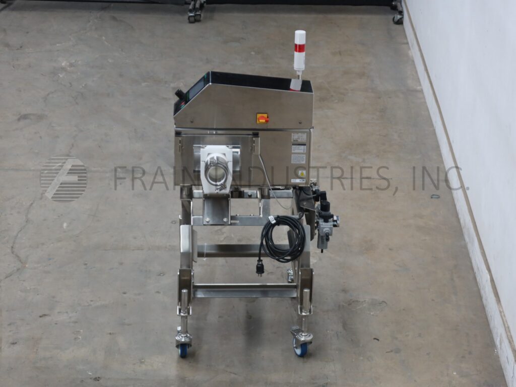 Loma, Model IQ4, Automatic, in line, metal detector with number of product per minute – depending on materials and application. 304 stainless steel construction. Equipped with Working Aperture: 6" in Height; 17" in Width. 16" wide x 82" long Intralox product conveyor with retracting nose reject and safety guarding. Touch pad controller with display and variable speed controls. Temperature range: -10 to +40 Deg C, 14 to 104 Deg F. Product Sensitivities: depending on product, container and environment being run in. Ethernet and USB capable. Mounted on (4) leg stainless steel frame with locking casters and statis light bar.