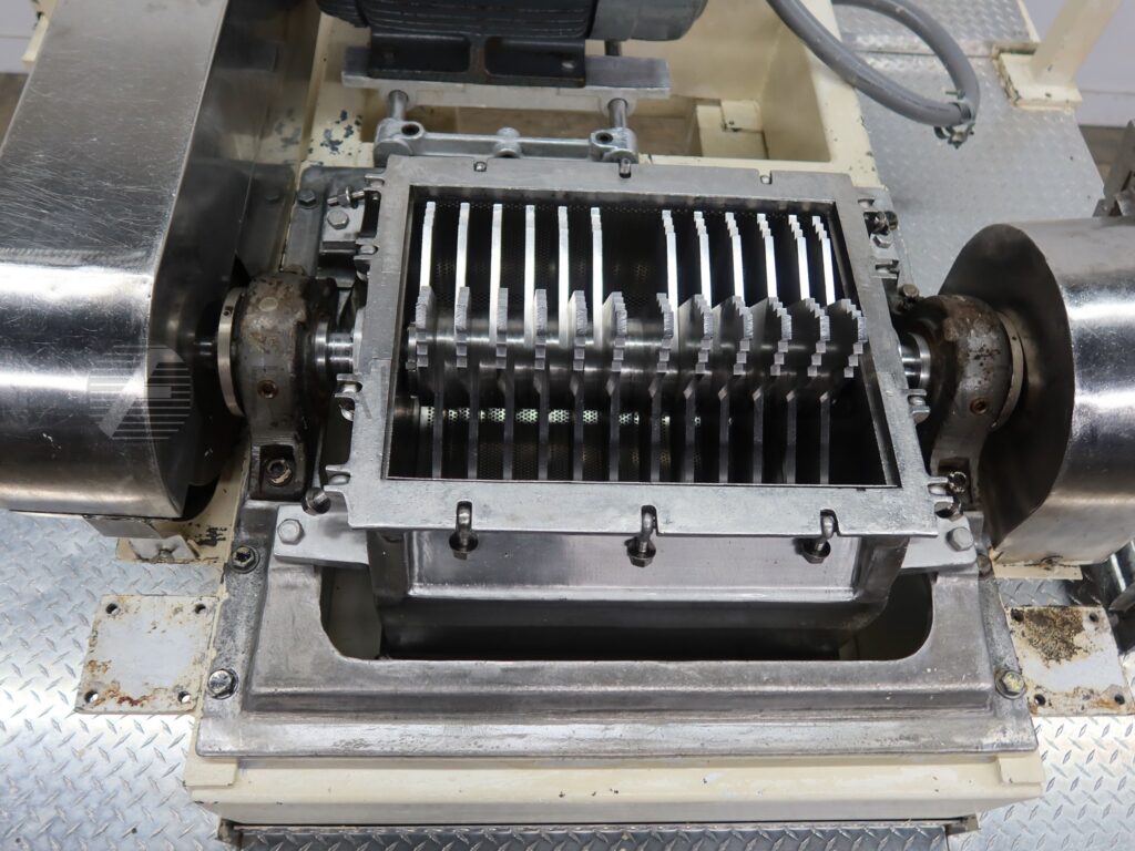 Quadro Model 194S, 316 stainless steel particle size reduction Comil. Equipped with 5¾" diameter feed throat, 8" diameter screen and 5¾" diameter discharge port with 38¾" ground clearance, variable speed. Rated up to 4,000 lbs of product per hour – depending on materials, machine configuration and application.