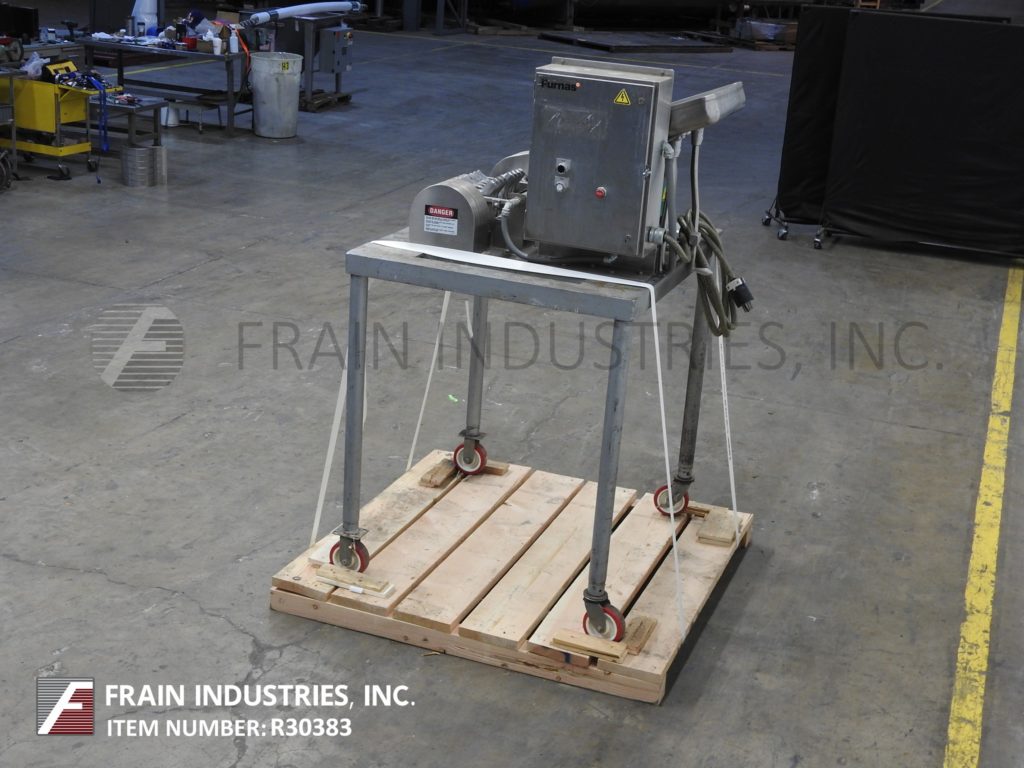 Fitzmill, Model DASO6, stainless steel hammer mill with production rates per hour – depending on materials, application and machine configuration. Equipped with a 28" long x 20" wide x 4" deep feed pan, 6" wide x 4" high feed throat, 11” long x 6” wide blade chamber and (16) fixed knife/impact blades powered by a 7½ Hp motor drive. Product discharge is 15½” long x 5¾” wide with 34” floor clearance. Start / stop controls, mounted on (4) legs with casters.