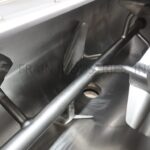 American Process Systems, Model FPB-10, 24 ft³ total, 10 ft³ working capacity, 304 stainless steel fluidizing paddle mixer with lbs of product per hour – depending on materials, application and machine configuration. Inner chamber dimmensions: 48" in Length x 26" In Width x 38" in Depth. Equipped with clamp down cover with 6" diameter product charge, 42" x 18" lift out screen with pneumatic vibrator, 42" x 18" lift out safety grate, 3" OD shaft with 4" x 7¼" paddles powered by a 15 hp drive and pneumatic flush mount discharge.