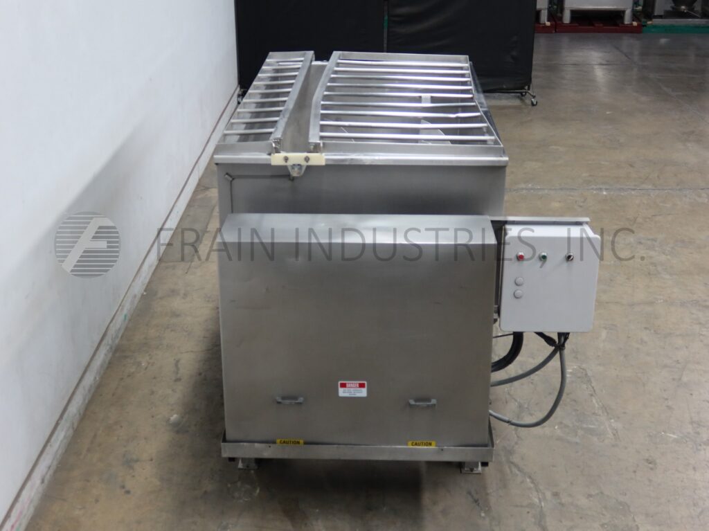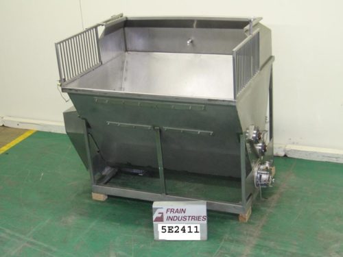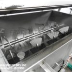 Forberg, Model FZM-26, 38 ft³ (26 ft³ working capacity), 304 stainless steel dual trough paddle mixer with pounds of product per hour – depending on materials and application. Dual mixing troughs with inner dimensions of: 52" in Length; 61" in Width; 45" in Depth. Equipped with (4) 18" x 18" side manways, top safety grate, 10¼" wide x 9¼" high stainless steel paddles, 15 Hp motor drive and dual bottom trap door discharge gates with 53" ground clearance.