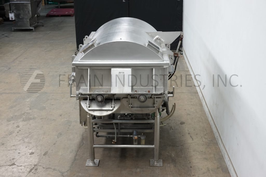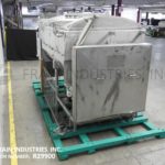 American Process Systems, Model FPB-10, 24 ft³ total, 10 ft³ working capacity, 304 stainless steel fluidizing paddle mixer with lbs of product per hour – depending on materials, application and machine configuration. Inner chamber dimmensions: 48" in Length x 26" In Width x 38" in Depth. Equipped with clamp down cover with 6" diameter product charge, 42" x 18" lift out screen with pneumatic vibrator, 42" x 18" lift out safety grate, 3" OD shaft with 4" x 7¼" paddles powered by a 15 hp drive and pneumatic flush mount discharge.