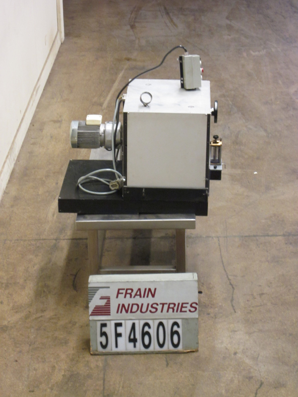High speed offset printer for film, or sugar coated tablets rated up to 750,000 tablets per hour. Able to run specific size and shaped tablets for either short or prolonged production runs, and has a 16" wide print area. Drum style unit has "USDA" approved coatingson all contact parts, with aluminum side frame construction. Last running in a pharmaceutical operation.