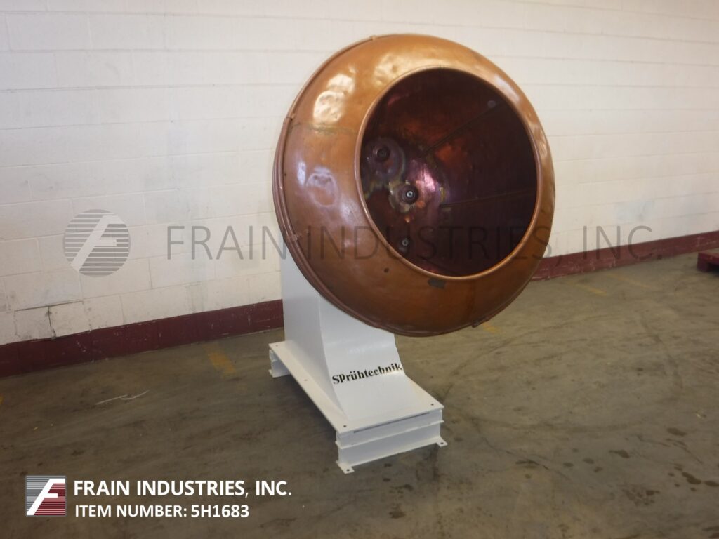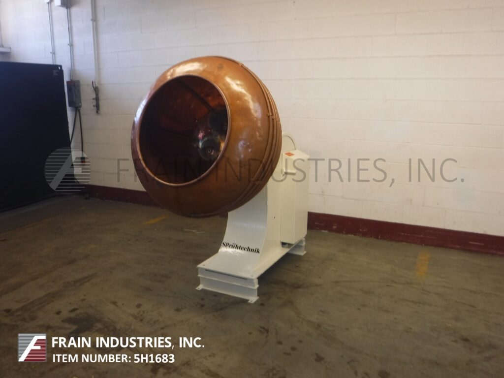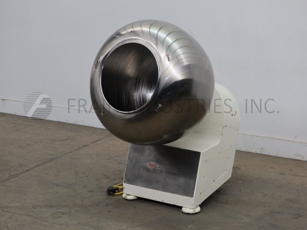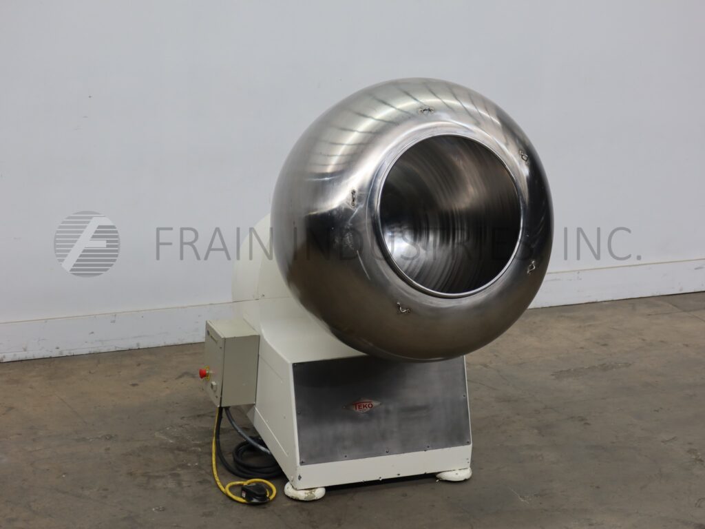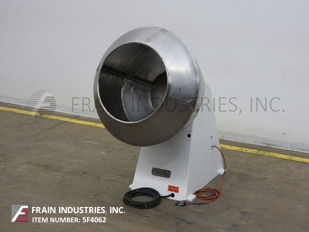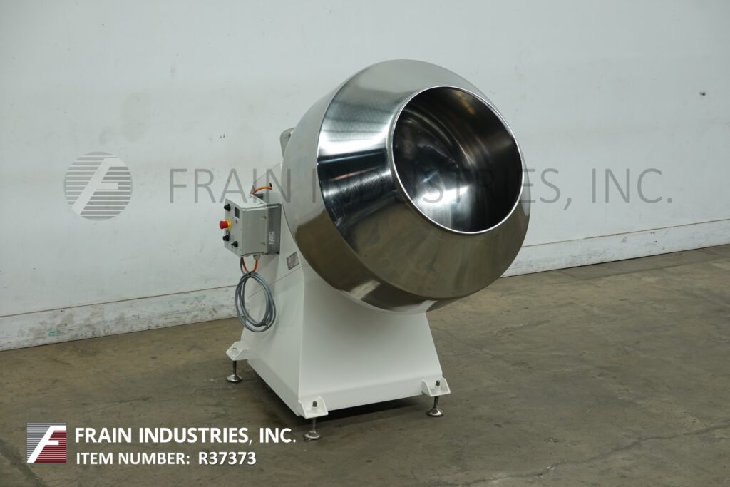 42" Diameter, stainless steel coating pan Pan dimensions: 42" ID; 34" deep; 24" access opening. 1 hp Variable speed drive, 1- 25 rpm.