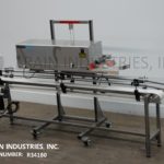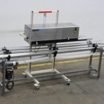 Bandrite Model 6000 RTL, Automatic, continuous motion, band style bag sealer rated from 250 to 750 inches per minute with number of bags – depending on materials, application and operator dexterity. Equipped with angled, tilt away sealing head has ¾" wide heat sealing and cooling bars with non-marking carrier belts, adjustable running speeds and temperature controls up to 600°F, bag trim station, 1 line coder and hand crank height adjustable for different size bags. Mounted over 6" wide x 100" long stainless steel conveyor with variable speed controller powered by ¼ Hp drive.