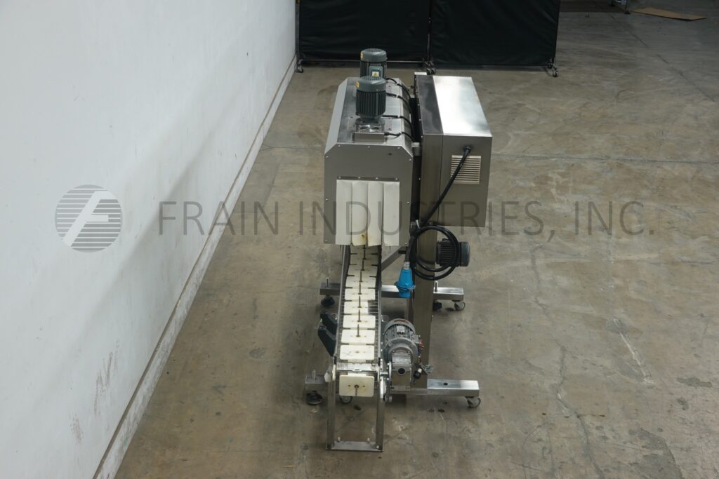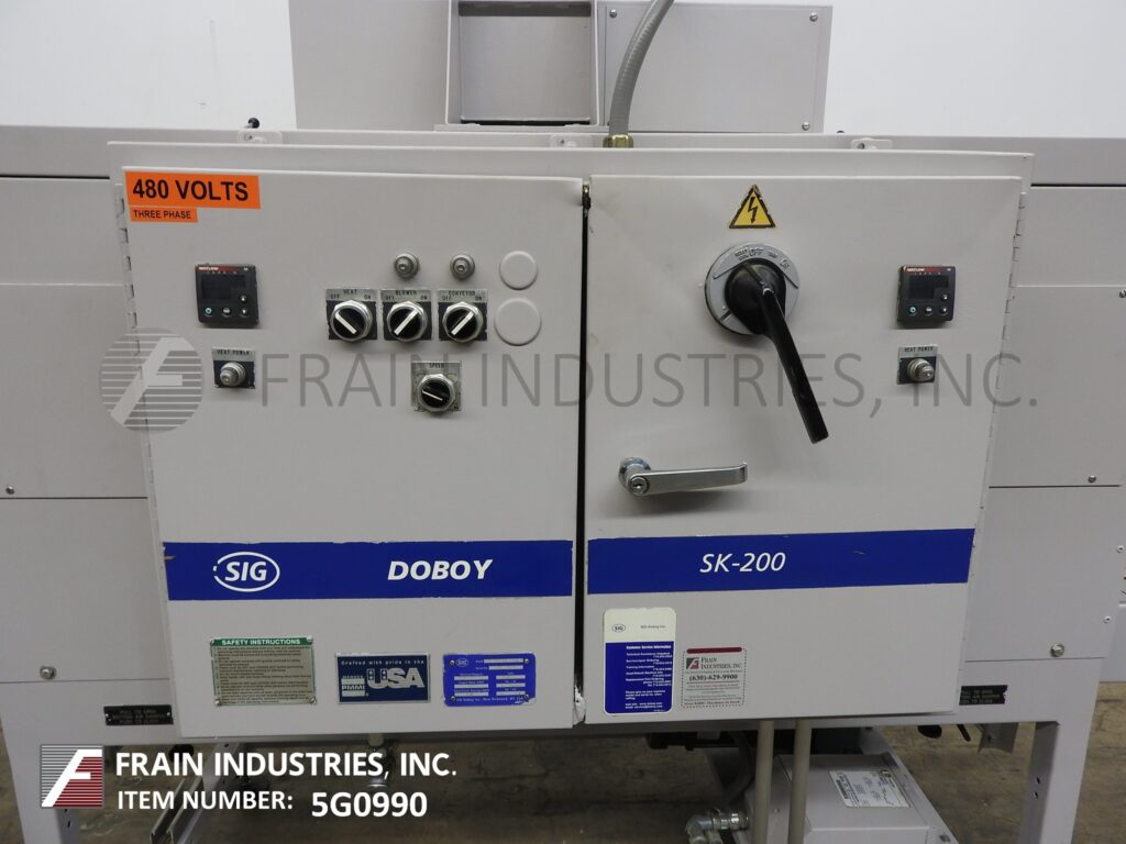 Sleeve Seal Model SST-1000E, Stainless steel, electric shrink tunnel with number of product per minute – depending on materials and application Capable of handling round, square, oval and other irregularly shaped containers. Equipped with 6¼" wide x 16" high x 79" long shrink tunnel. Control panel has power, revolver, heater on / off switches, (2) temperature contollers and a volt meter. Mounted on heavy duty frame with casters ment to roll over existing conveyor.