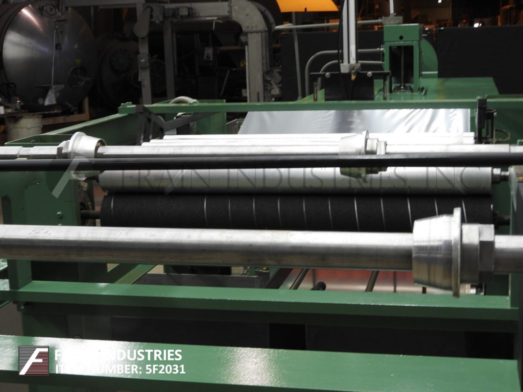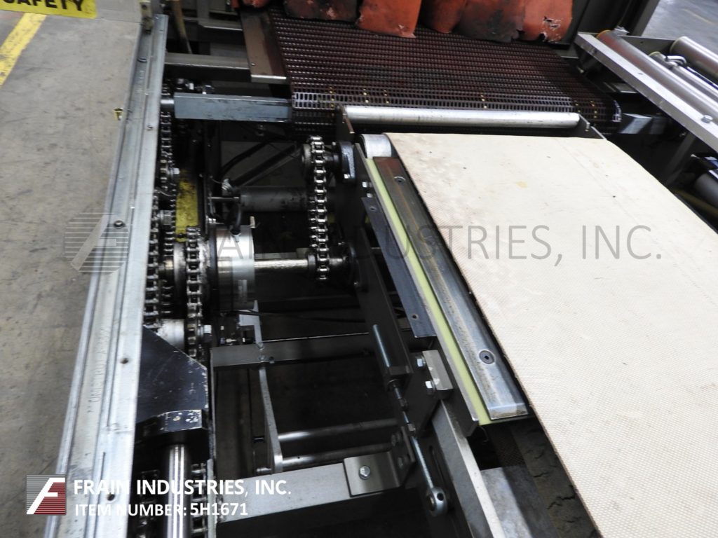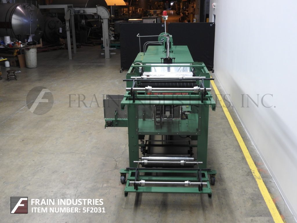 Automatic, inline, registered shrink bundler. Equipped with indexing system, bottom film carriage, film registration, 36" long x 24" wide rotary arm wrap station, interlocking Lexan safety guarding and Allen Bradley Controllogix, with 10 inch HMI touch screen. Film width up to 24".