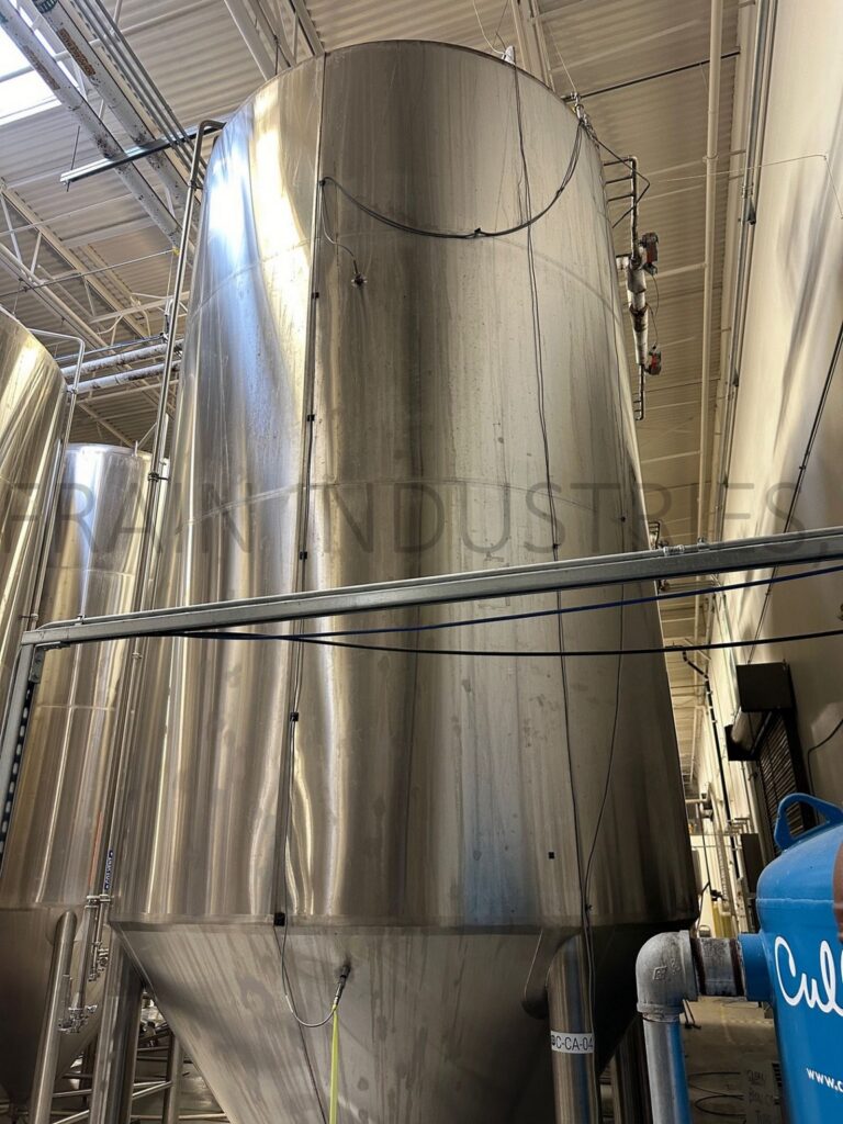 Prospero / SK SKRLJ, 4,800 gallon, 304 stainless steel, jacketed and insulated tank. Vessel Dimensions: 83" diameter x 163" straight wall with a cone bottom. Equipped with 12" x 17" side manway with bolt down cover, (2) thermowells and 2" Tri-clamp discharge with 6" ground clearance.