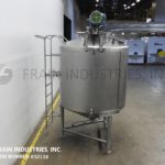 Cherry Burrell 1000 gallon, 316 stainless steel, single wall processing tank. Vessel dimensions: 72" ID x 60" straight wall. Equipped with a 7½ Hp top bridge mounted sweep agitator, 48" x 20" manway, 10" wide x 50" long adjustable baffle, (1) thermowell and (1) flush mount sensor port. Cone bottom has 5¾"OD / 4¾"ID Tri-Clamp center discharge with 22" ground clearance. Mounted on (3) leg frame with side access ladder.