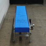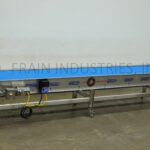 Custom Cut Metal, stainless steel frame conveyor. Equipped with a 24" wide x 180" long belt with a 34" to 38" infeed / discharge range. Powered by a ¾ hp drive with variable speed control.