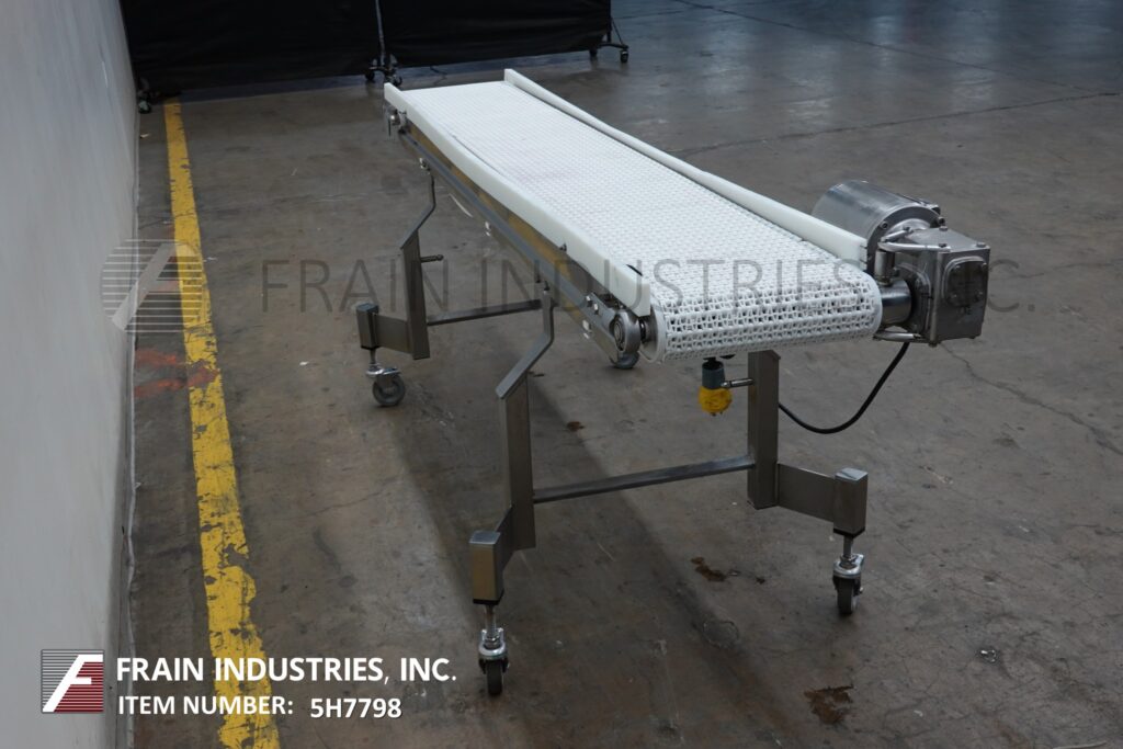 Dorner, 13½" wide x 94" long stainless steel table top conveyor. 13½" wide and 94" long Intralox belt has an infeed and discharge height of 35". Equipped with a ½ HP drive, variable speed control and mounted on locking casters.