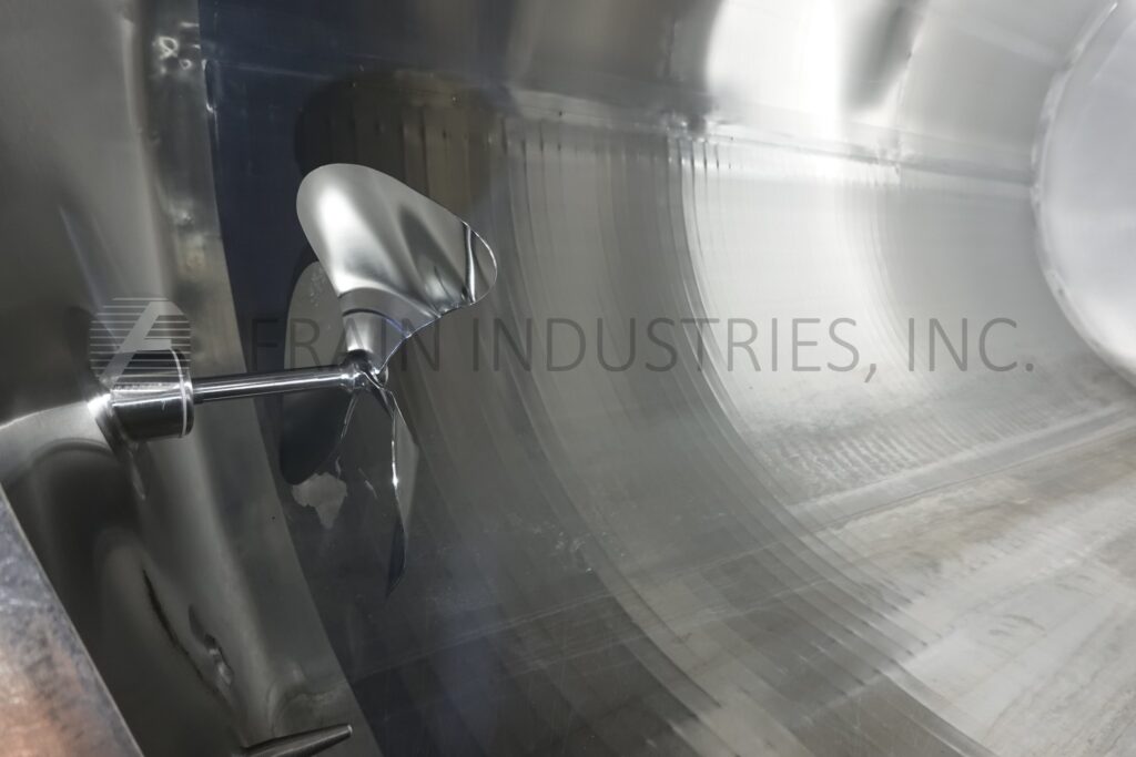 Feldmeier, 600 gallon capacity, 316 stainless steel single wall tank. Vessel dimensions: 60" diameter x 70" deep with a 50" straight wall. Equipped with dome top, 18" OD top manway, double motion scrape and prop agitation, (2) CIP spray balls supplied by 2"OD / 1½"ID Tri Clamp fitting and flush mount sensor. Cone bottom has 3½" OD / 3" ID tri-clamp center bottom discharge with 25" ground clearance.