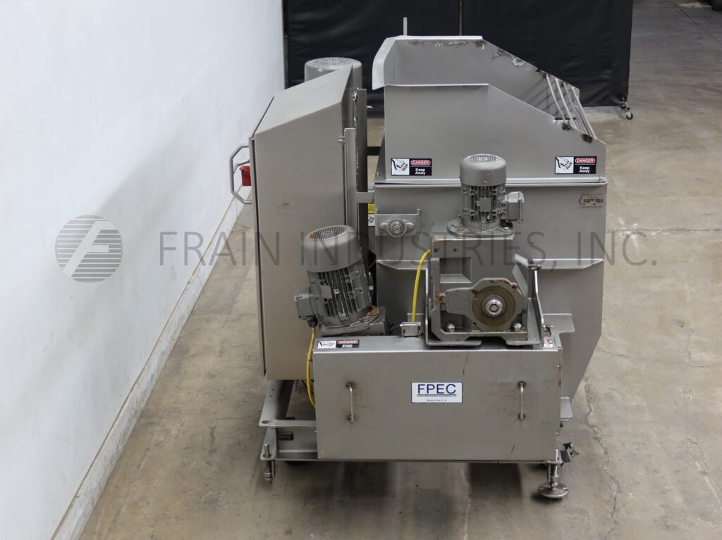 FPEC, Model SCL 930, stainless steel, screw pump feeding system. Equipped with a stainless steel 48" long x 36" wide x 32" deep product hopper with pin bar agitation powered by a 3 hp drive, dual stainless steel feeding screws powered by a 10 hp drive and Waukesha 324 positive displacement pump powered by a 30 hp drive with 4½"OD / 4"ID triclamp style discharge with 25" ground clearance. Mounted on a stainless steel frame. Rates dependant on materials, application and machine configuration.