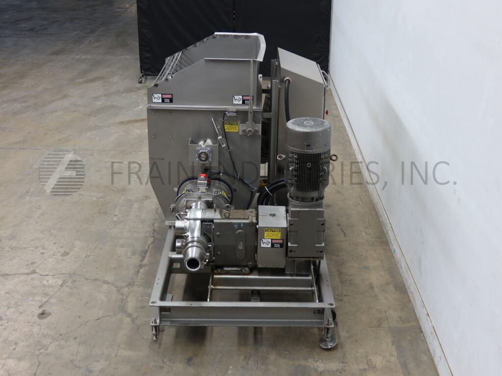 FPEC, Model SCL 930, 22 ft³, stainless steel, screw pump feeding system. Equipped with a stainless steel 36" long x 34" wide x 35" deep product hopper with paddle agitation powered by a 1 hp drive, 9" diameter by 36" long stainless steel feeding screw powered by a 7½ hp drive and Waukesha 224 positive displacement pump powered by a 20 hp drive with 4½"OD / 4"ID Tri-clamp style discharge with 34" ground clearance. Mounted on a stainless steel frame. Rates dependant on materials, application and machine configuration.