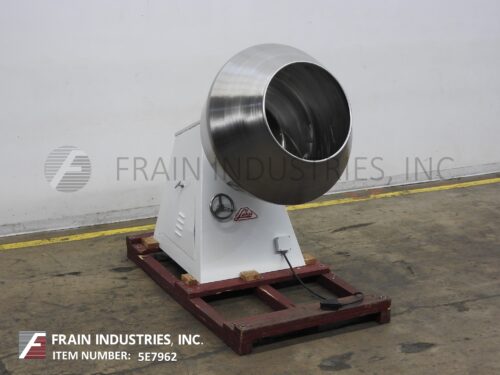 42" Diameter, stainless steel coating pan Pan dimensions: 42" ID; 34" deep; 24" access opening. 1 hp Variable speed drive, 1- 25 rpm.
