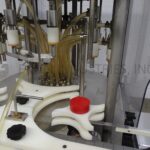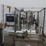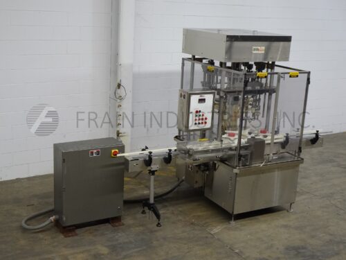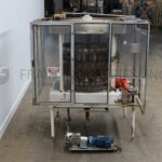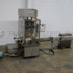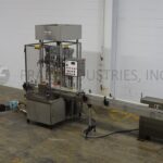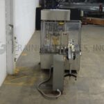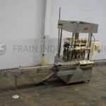 MRM Model RPF8, Automatic 8 head rotary piston filler capable of speeds from 20 to 120 container per minute – depending on product and fill volume. Maximum container size: 5" diameter x 12" height. Equipped with 14 gallon, heated hopper and has level detector, mechanical container height and piston adjustment, no container / no fill, 4-1/2" x 6′ conveyor track, stainless steel contact parts and Lexan guarding.