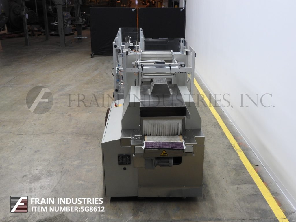Pester Model Pewo Fold, automatic, cut and fold, horizontal overwrapper and can also be operated as a band sealer rated up to 50 cycles per minute with number of packages – depending on materials and application. Package size range: Length to 250mm (9.85"); Width to 400mm (15.75"), Height to 140 mm (5.5") and is capable of running polyethylene, polypropylene and PVC films, with minimum / maximum film widths of: 90mm (3.6"); 400mm (15.75") and minimum / maximum film thickness of: 0.02mm to 0.05mm. Equipped with waterfall up ender, up-stacker, multiple row collation, film registration, metric scales for adjustments, dual film arbors, empty roll sensor, static eliminator, hand crank adjustable with in feed / discharge belt conveyors and statis light. Control panel has PLC. controller with push button controls and e-stop with sealing jaws, back-up time and machine function statis gauges. Mounted on base frame with interlock safety guarding, casters and leveling legs.