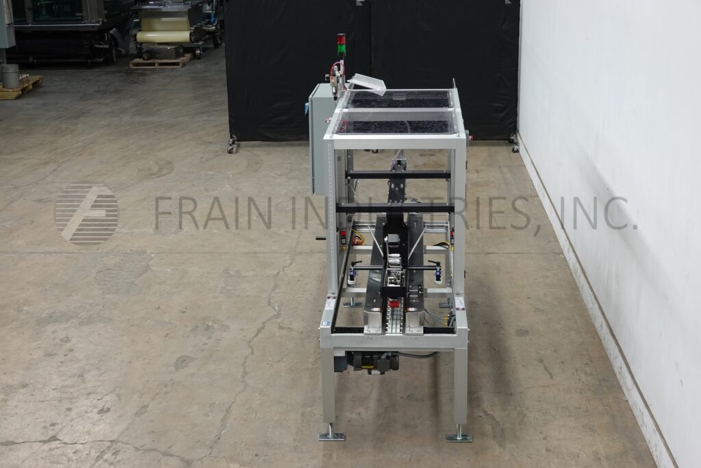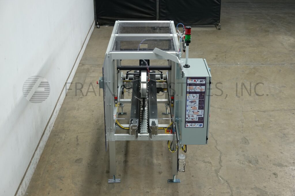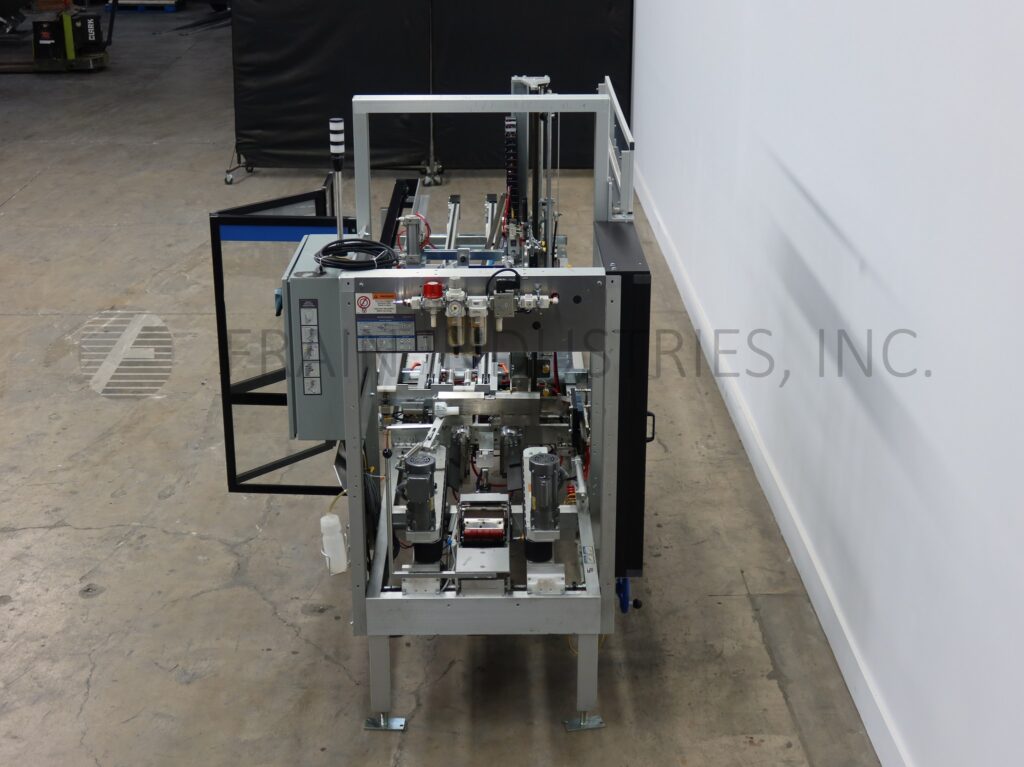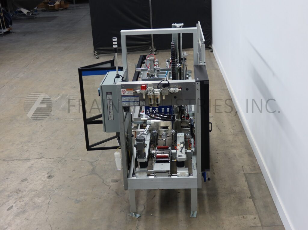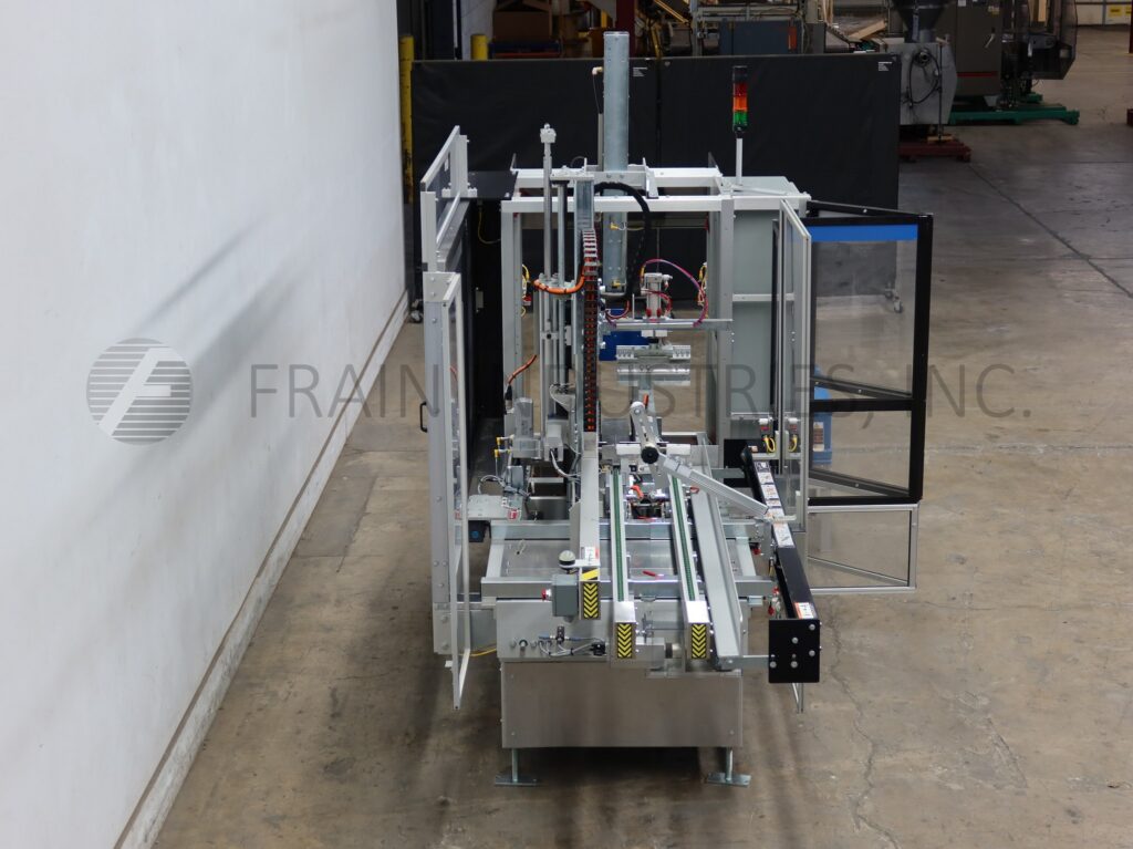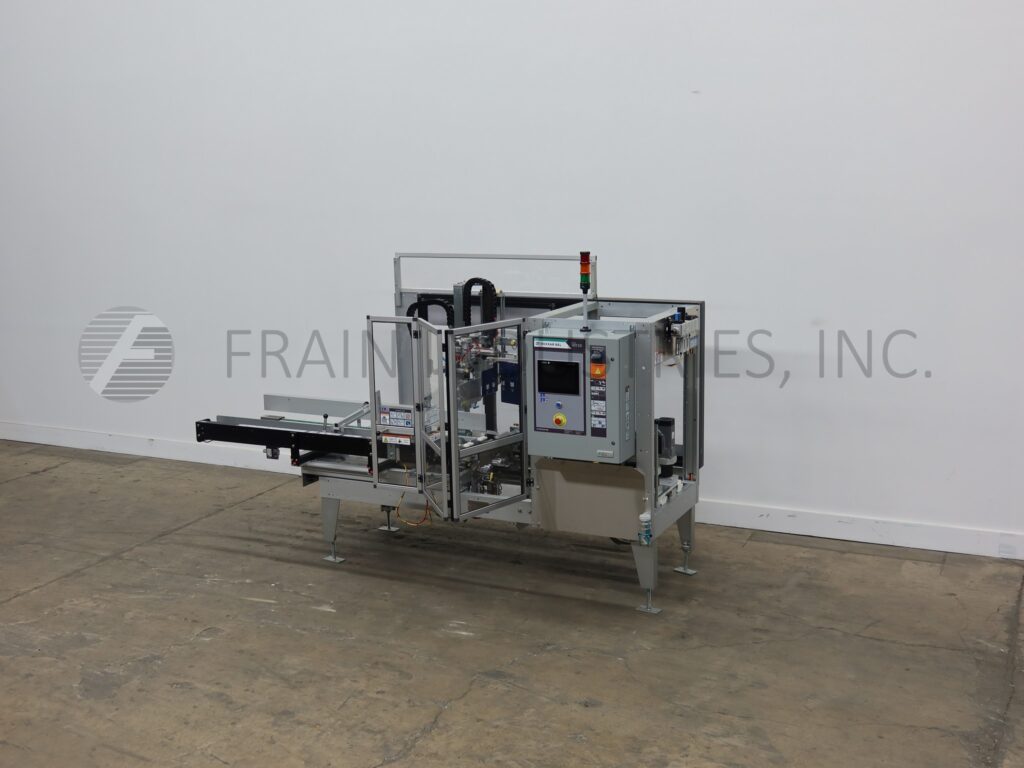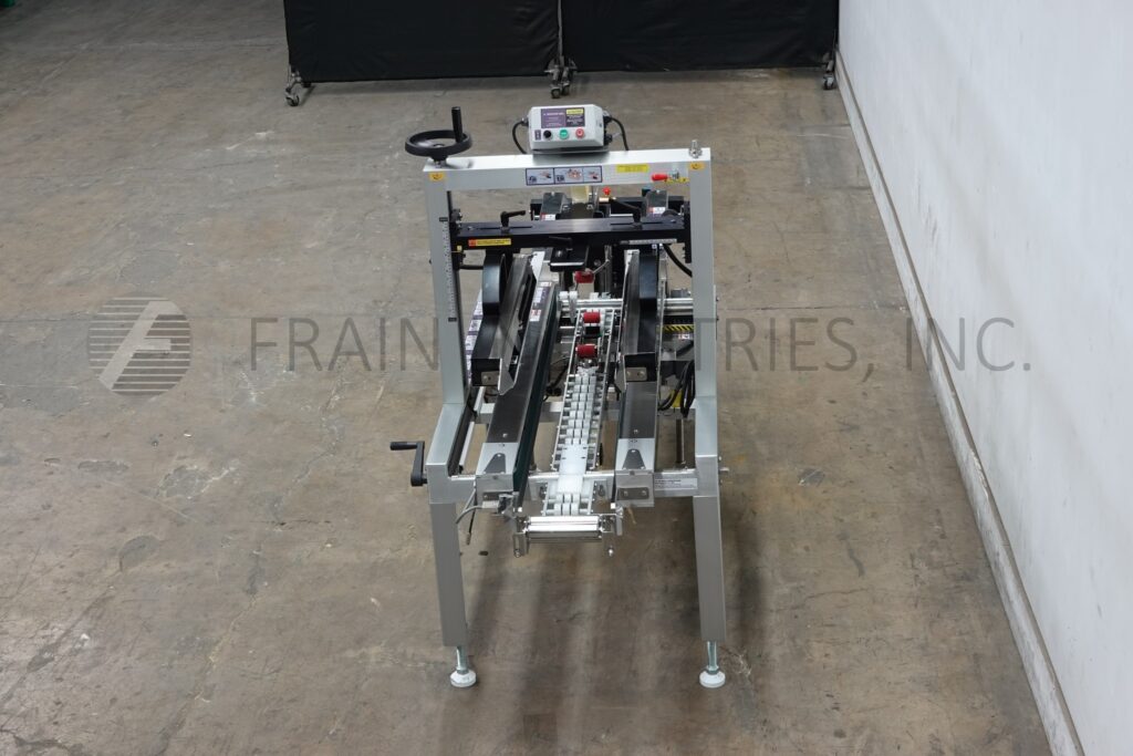 Wexxar, Model WF-20T, Automatic, in line case erector, bottom taper. Rated from 5 to 20 cases per minute – depending on materials, application and machine configuration. Case size range: 7¼" to 18" in Length; 7¼" to 14" in Width; 6" to 15" in Height. Equipped with 64" long blank case magazine, pin and dome case erecting system, minor and major flap closers, 2" bottom tape head, 32" long hand crank adjustable side gripper belts. Control panel with touch screen HMI and start and e-stop push button controls and statis light bar. Mounted on (4) leveling leg frame with slide door safety guarding.