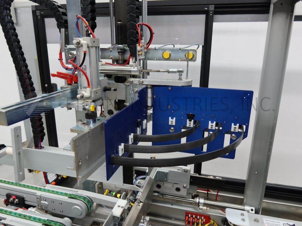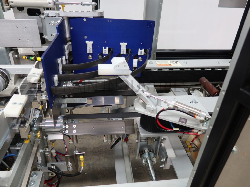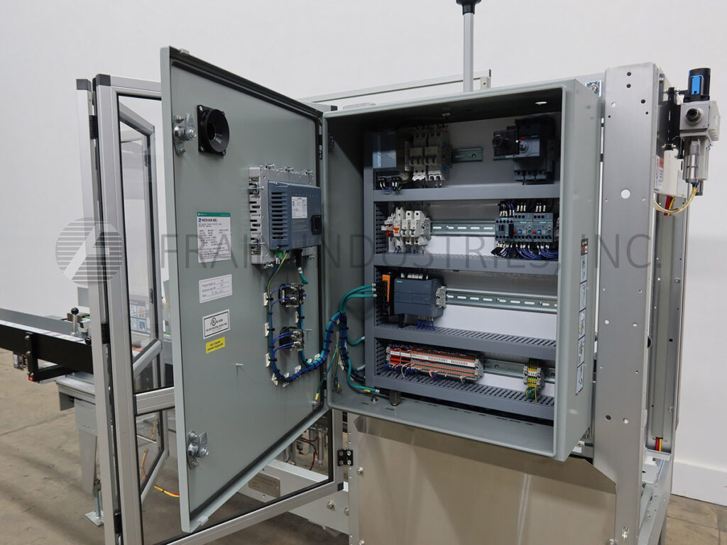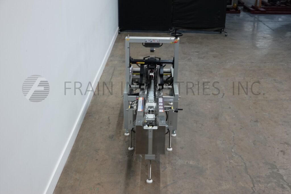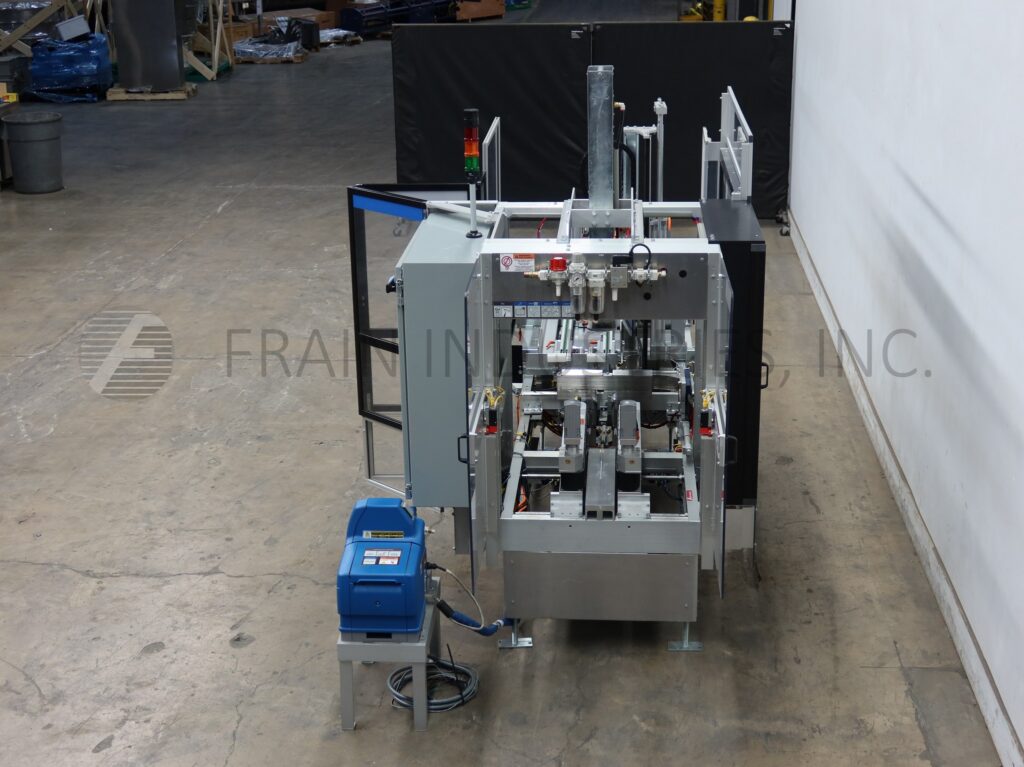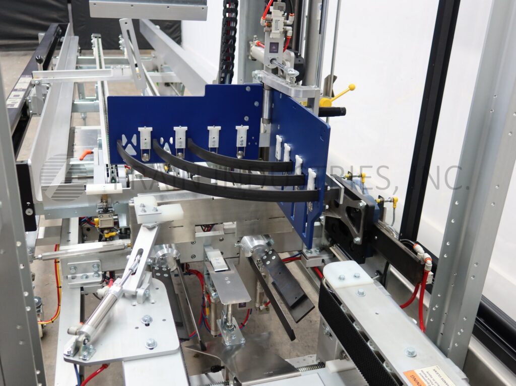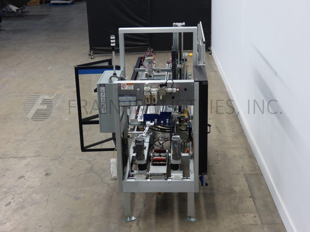 Wexxar, Model WF-20T, Automatic, in line case erector, bottom taper. Rated from 5 to 20 cases per minute – depending on materials, application and machine configuration. Case size range: 7¼" to 18" in Length; 7¼" to 14" in Width; 6" to 15" in Height. Equipped with 64" long blank case magazine, pin and dome case erecting system, minor and major flap closers, 2" bottom tape head, 32" long hand crank adjustable side gripper belts. Control panel with touch screen HMI and start and e-stop push button controls and statis light bar. Mounted on (4) leveling leg frame with slide door safety guarding.