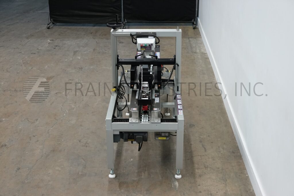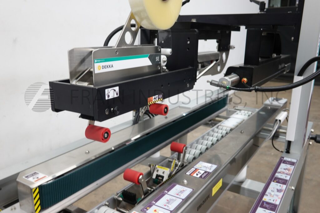 Wexxar, Model 290T, Automatic, uniform, top tape case sealer. Rated from 5 to 50 case per minute -depending on materials and application. Case size range: 8" to 32" in Lenght x 5¼" to 17½" in Width x 5" to 19" in Height. Equipped with (2) 80" Long x 3" high side case transfer belts, 2" Deka top tape head with adjustable height and width hand cranks. Control panel with touch screen HMI. Mounted on base frame with adjustable height legs.