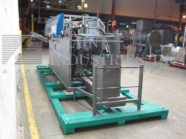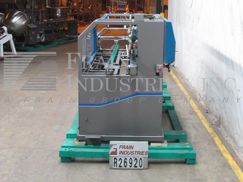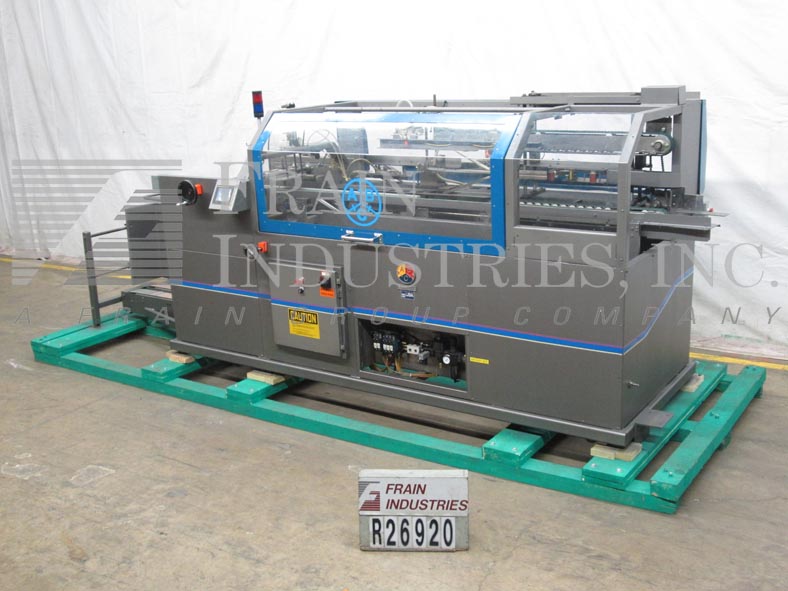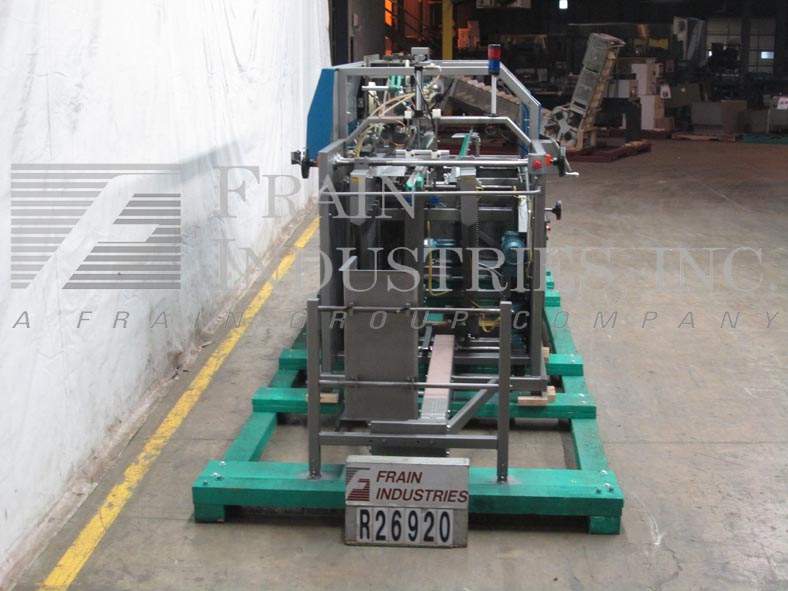 Back to All EquipmentABC, Model 330T, automatic case erector and bottom tape sealer. Case size range; 7" to 22" in Length; 5¾" to 16" in Width; 7" to 22" in Height. KD dimmensions: 12" to 38" in Length; 8" to 29¼" in Width both (RSC) and (HSC) cases. Equipped with a 64" long easy load automatic blank case magazine, suction cup pick and place with self-adjusting spring loaded suction cups, suction cup case erector, major and minor flap closers, walking beam case transfer, 45" long x 2½" wide dual upper and lower case belt drive transports thru 2" tape head and Siko gages. Control panel with touch screen and e-stop buttons. Interlock gull-wing safety guarding.