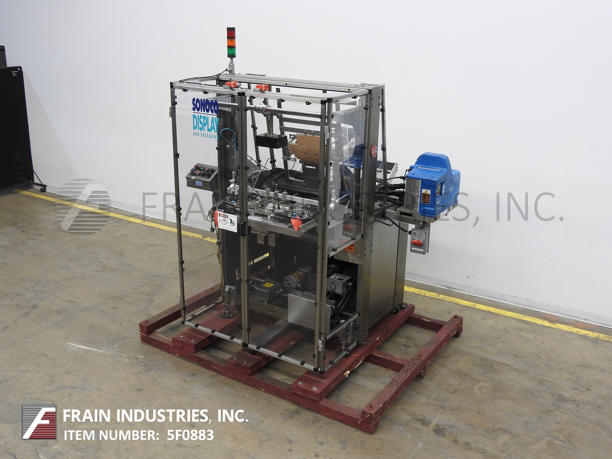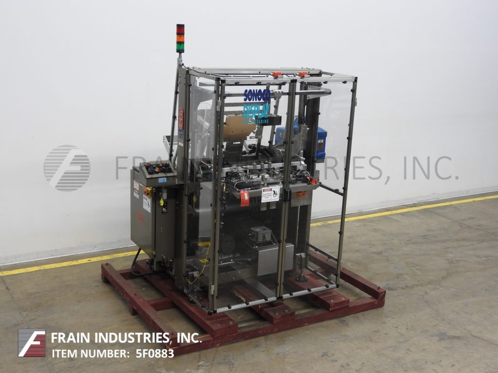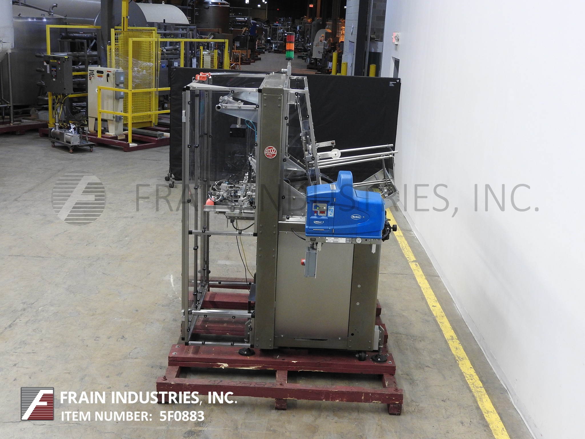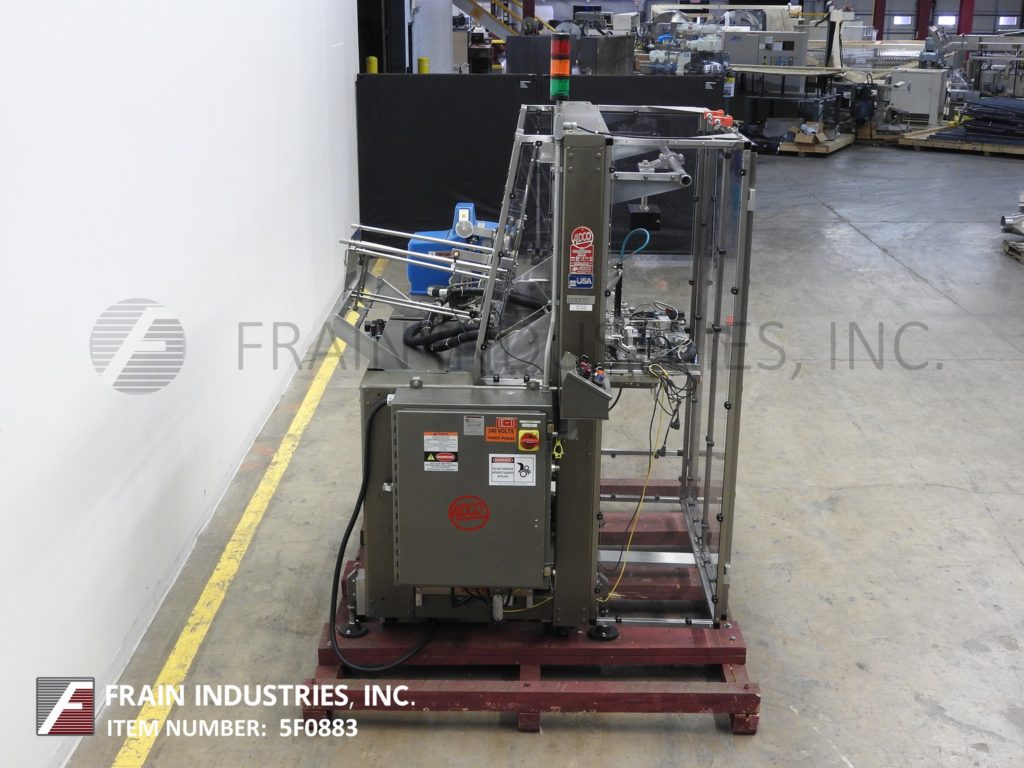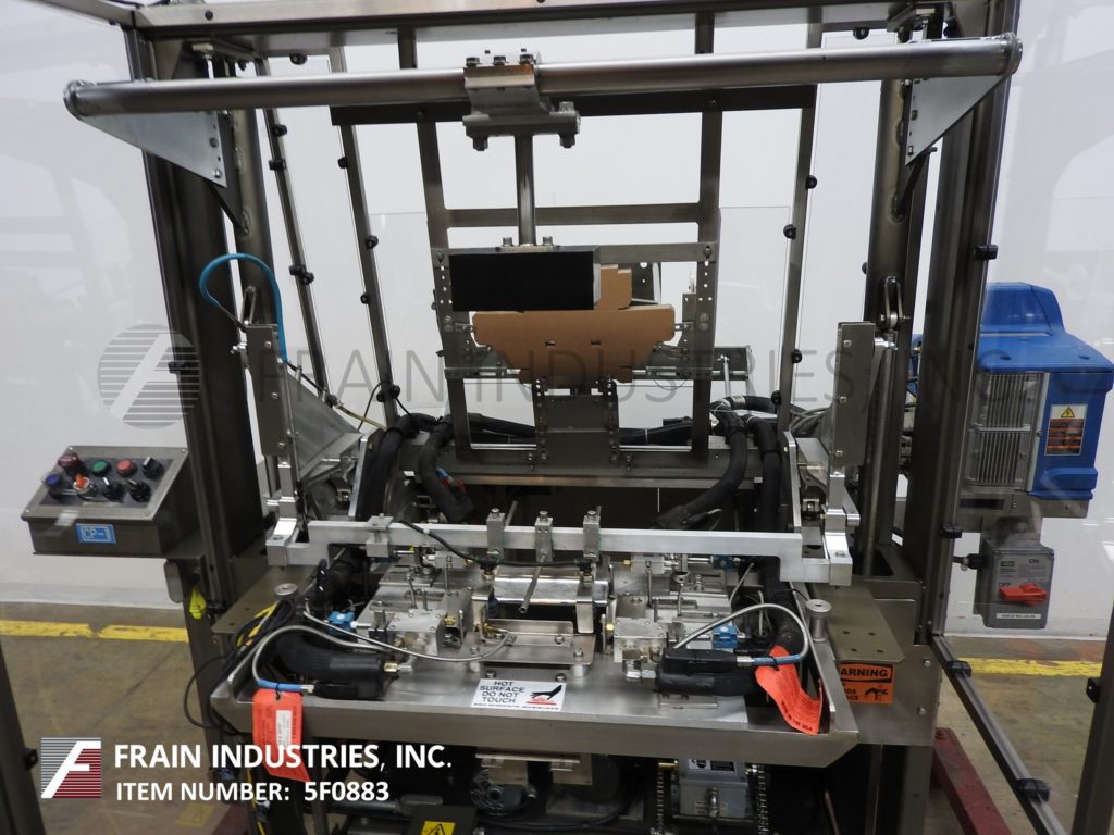 Back to All EquipmentAdco Model AF-30-1-EC, automatic, stainless steel, single head, hot melt glue tray former. Blank size range: 7-1/2" to 29" in Length; 5" to 26" in Width. Erected Tray size range: 5" to 19" in Length; 3" to 14" in Width; 5/8" to 6" in Depth. Equipped with magazine, reciprocating vacuum pic-n-place, forming station, Nordson hot melt glue system and statis light bar. A/B PLC with touch screen and interlocked guarding. Rate dependent on materials, application and machine configuration.