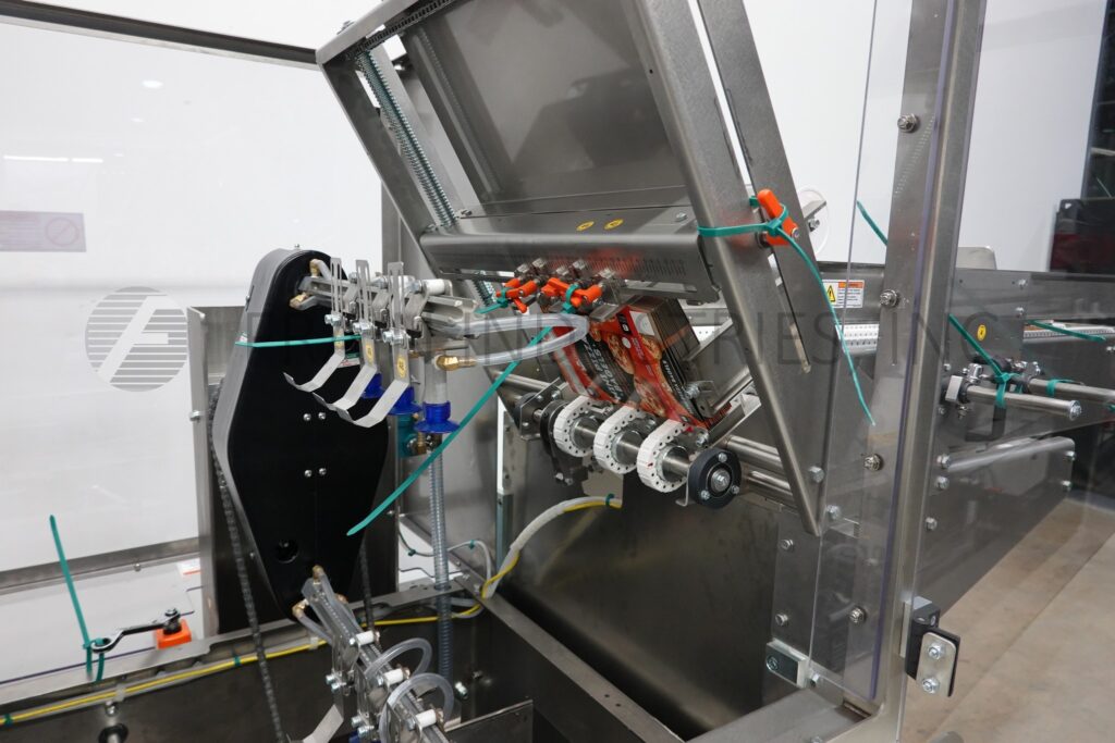 Back to All EquipmentAdco, Model 15DBC105SS, Automatic, continuous motion, horizontal, hot melt glue cartoner rated from 25 to 125 cartons per minute – depending on materials and application. Carton size range: 1" to 9-1/2" in Length; 3/4" to 4" in Width; 4 to 12" in Depth. Equipped with (4) chains adjustable set on 12" centers and has 3½" high lugs, with automatic 46" belt blank carton magazine, (2) head rotary pic-n-place, with pre-break, no-product / no-carton, top carton hold down, barrel cam loader, Nordson hot melt glue unit and built in vacuum system. Control Panel has relay logic controller with machine, vacuum, speed, pattern control with jog / run, on / off switches and start, stop, e-stop push button controls and statis light. Mounted on heavy duty height adjustable frame with caster with leveling legs and interlock safety guarding.