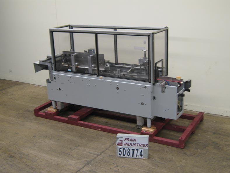 Back to All EquipmentAdco semi automatic, top flap closer and sealer with number of cartons per minute – depending on materials, application and operator dexterity. Carton size range: 2-1/2" to 18" in Length; 2-3/8" to 5-1/2" in Width; 4" to 15" in Depth. Equipped with 2 chains with 3-1/4" high lugs set on 21" centers, dual belt in-feed, top case squaring lugs during sealing, right angle pneumatic discharge, E-stop and barrier guarding. Mounted (4) leg frame with casters.