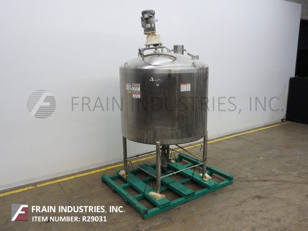 Back to All EquipmentAPV, Model CCA, 1000 gallon, 304 stainless steel, single wall tank. Vessel Dimensions: 72" diameter with a 56" straight wall. Equipped with a dome top, 18" diameter top bolt down man way, top mounted prop / dixie agitation powered by a 10 hp drive, (2) CIP spray balls supplied by 2"OD / 1½"ID Tri-clamp fittings and pneumatic plug style valve with a 3½"OD / 3"ID Tri-clamp fitting and 28" ground clearance.